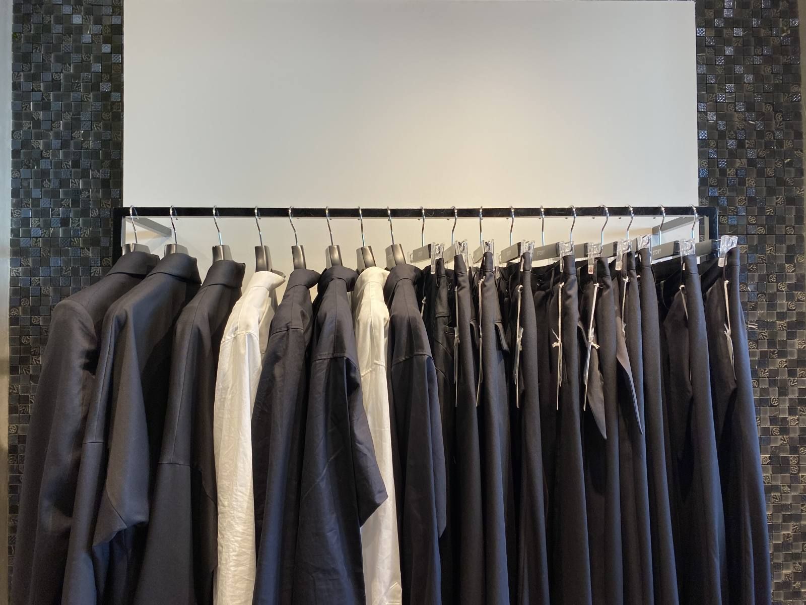 コート、ジャケット、シャツ、スラックスといったモードな雰囲気のアイテムをメインに仕入れした。
