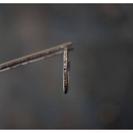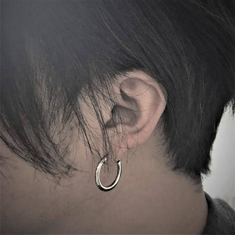 やや大振りのリングピアスです。 正面からはテクスチャがキラリと光り、それを強調しつつも二面性を持たせるためにサイドは曲面で鏡面仕上げ。
