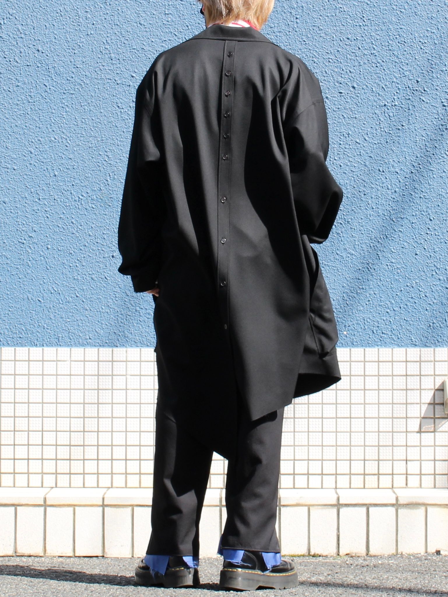 シャツはアシンメトリー仕様や、背面にボタンが付いたデティールで他とはひと味違うシャツ兼ライトアウターとしてお使いいただける超万能アイテム。ドロップショルダーでオーバーサイズ、一言で言うと雰囲気めちゃくちゃ出ます。。これからの季節に活躍間違いないですね!