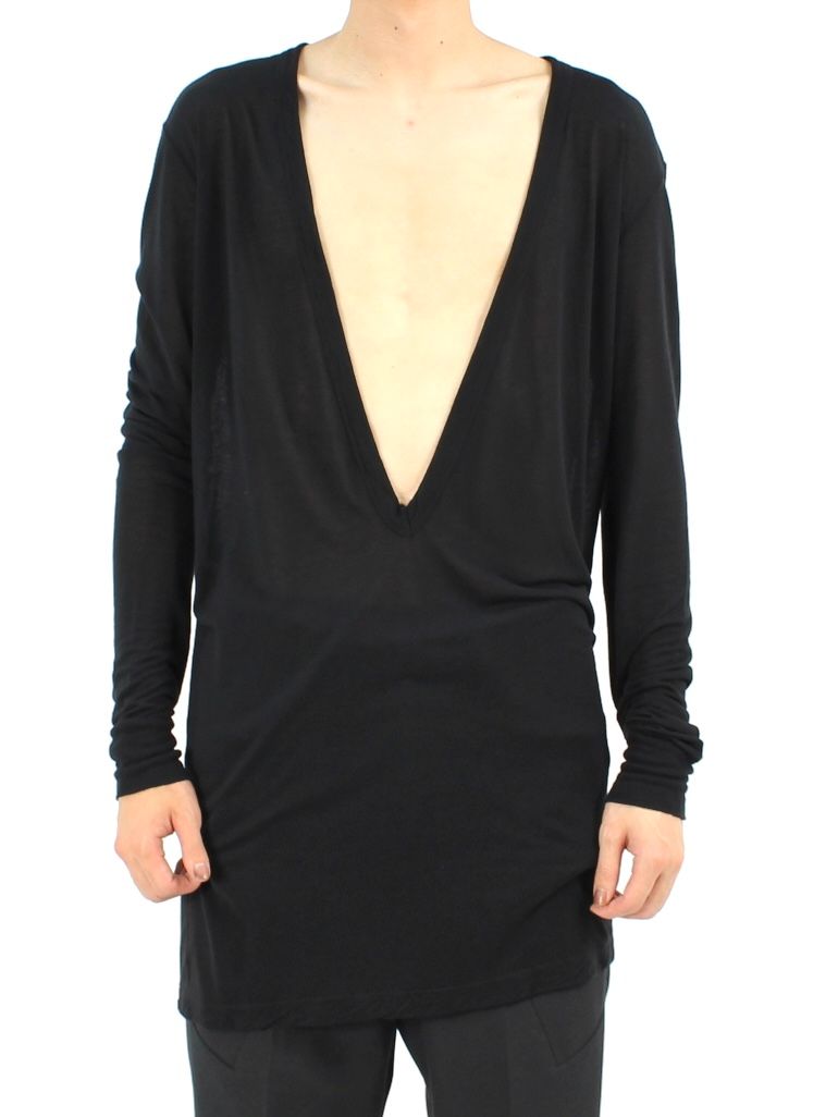 リックオウエンスらしい胸元が広く開いたデザインのカットソー。ボディラインが抜群に綺麗に見えるシルエットな為、単体での着用はもちろん、タンクトップとのレイヤードスタイルもオススメです。