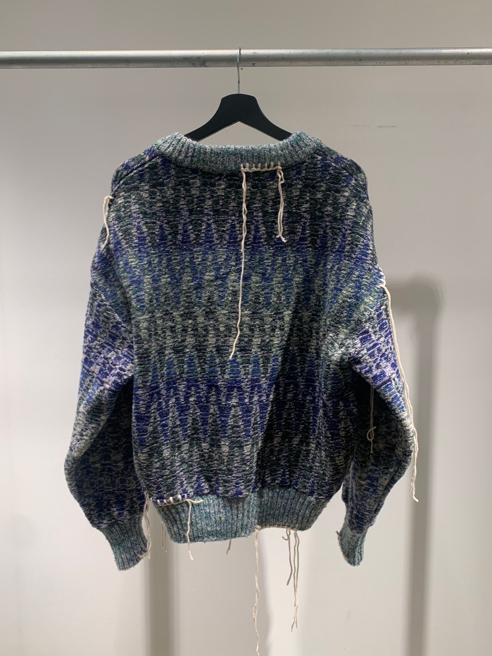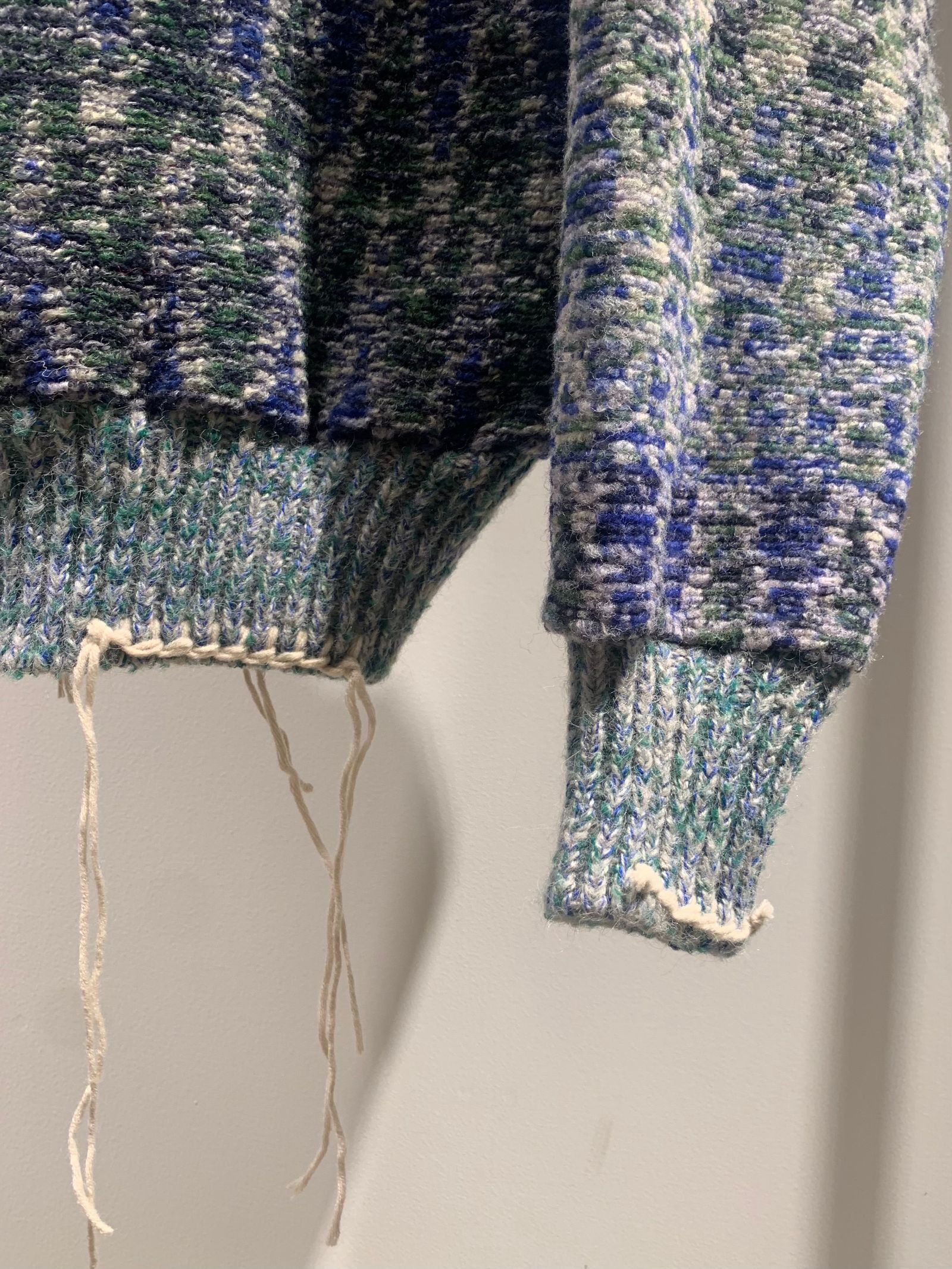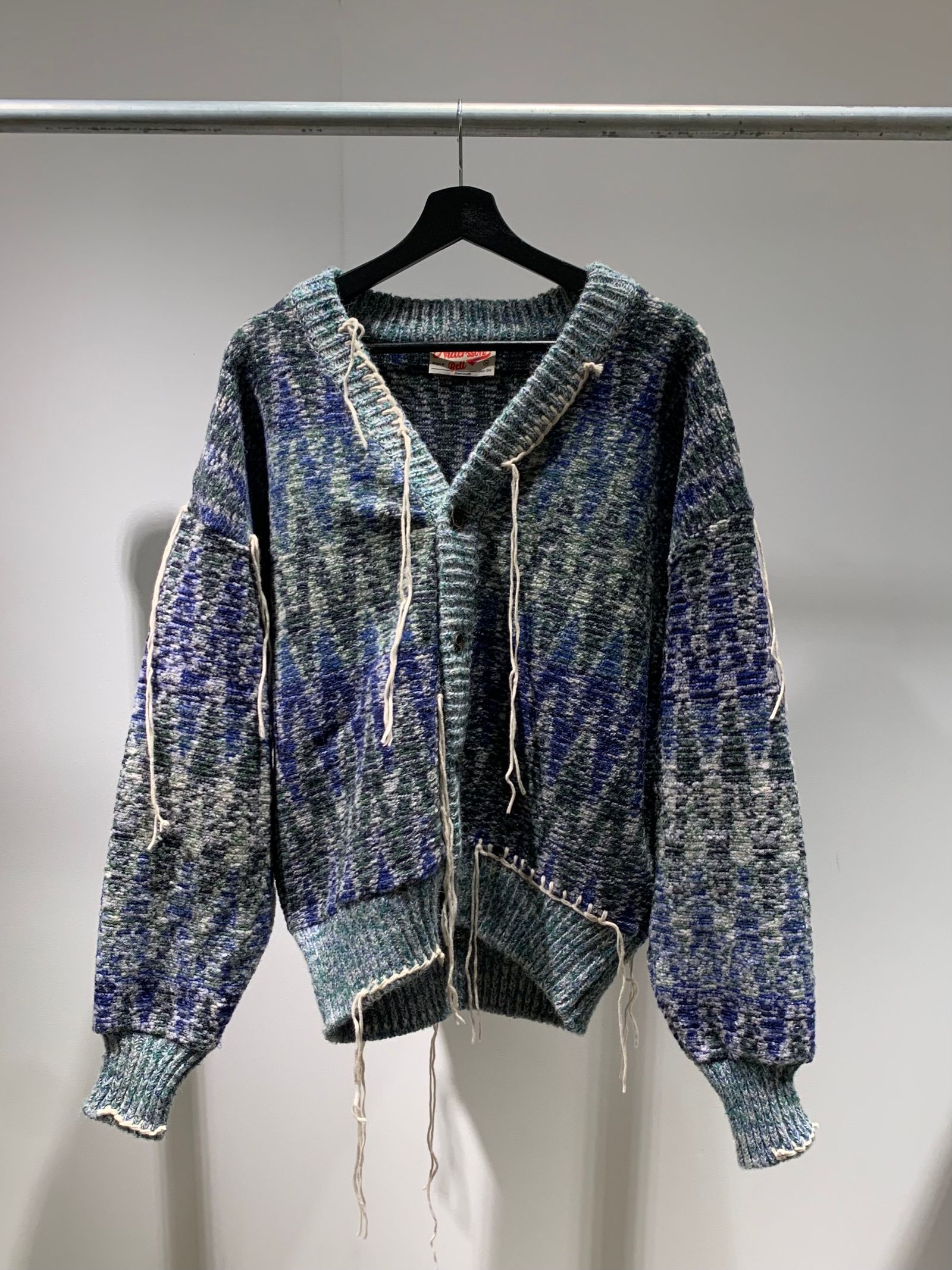 部分部分にほつれたようなデザインとそれぞれのカラーリングのほつれに遊び心の感じられる一着。一着取り入れるだけでアクセントになる事間違いありません◎