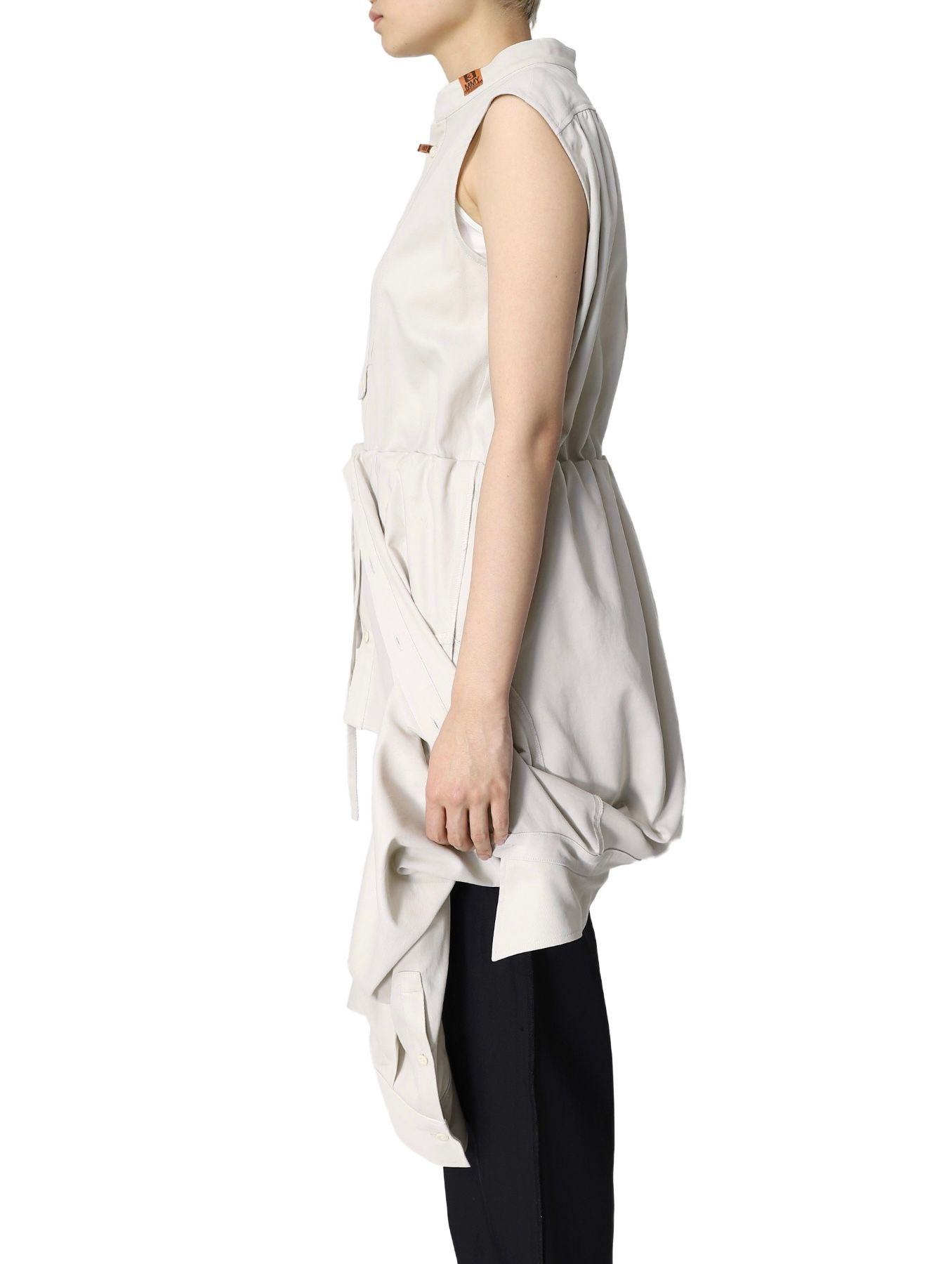 長袖から腕を外して、ノースリーブデザインとしても着用が可能な2通りの着方を楽しめるレイヤーシャツ。