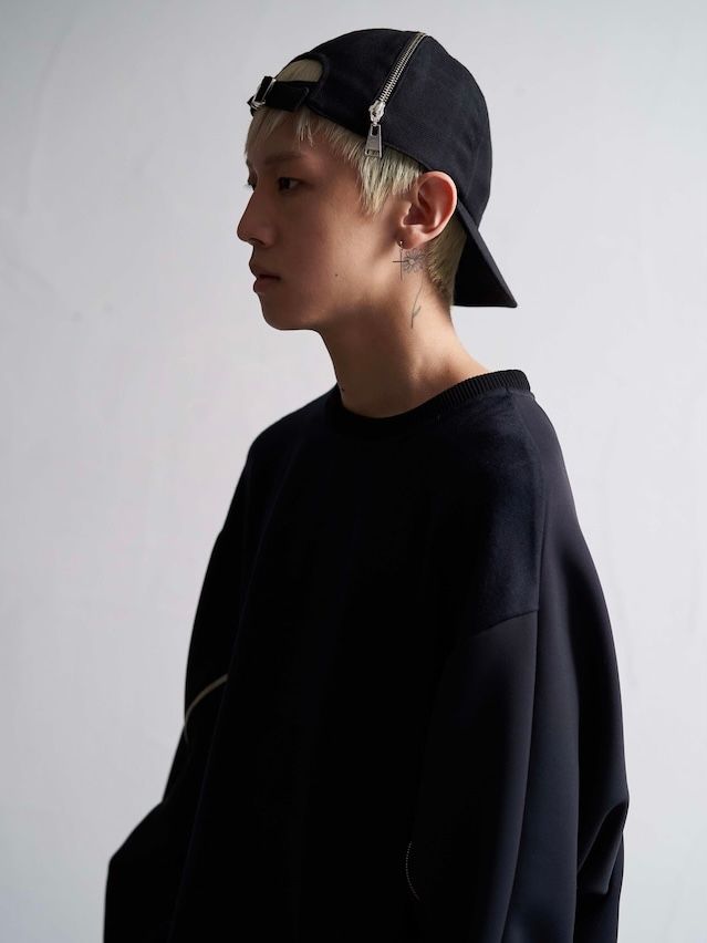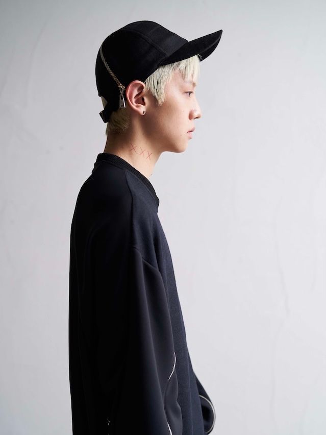 両部分に施されたファスナーの開閉によりコーディネートに一体感が生まれます。