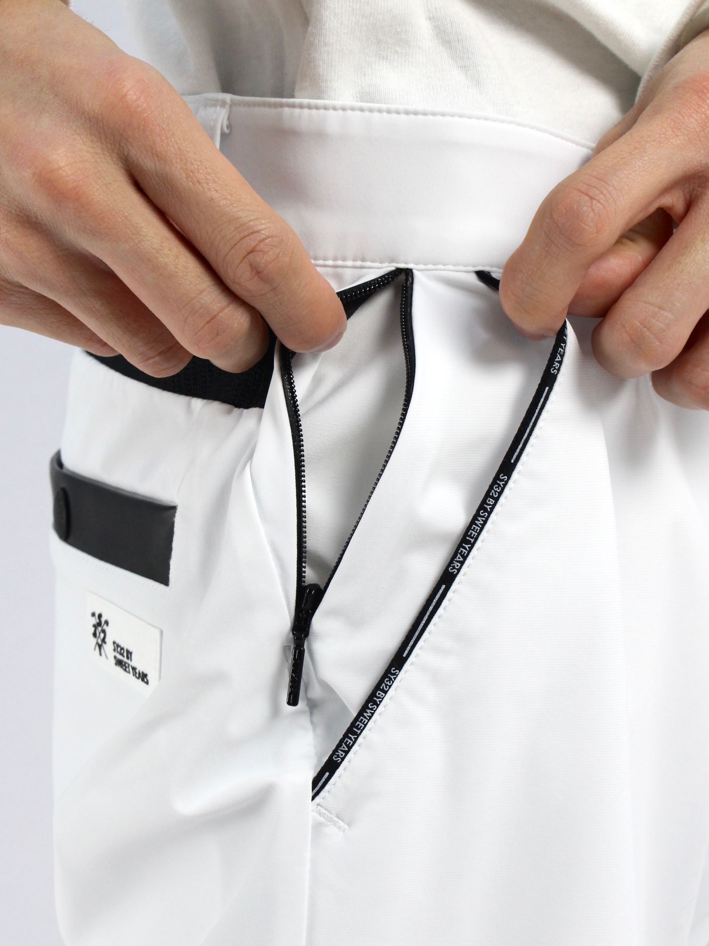 こちらのアイテムはナイロン素材を使用しておりますが、イタリア製の冷感素材を使用しており、ナイロンパンツにありがちなムレを気にせず着用できるのがポイント◎