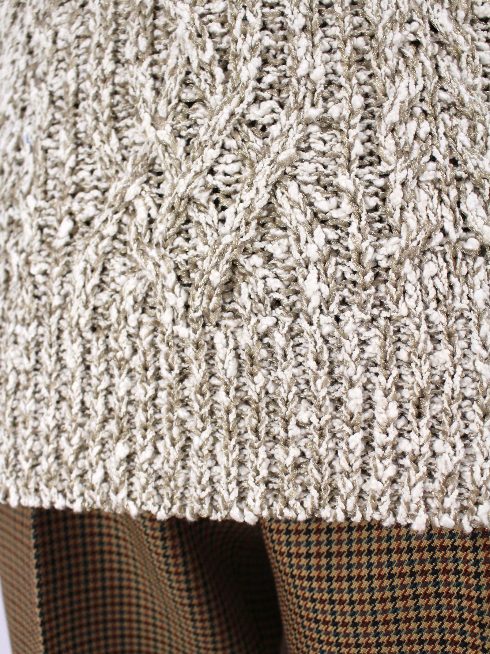 イタリア糸と交わるようにラメ糸を織り込ませる事でさりげなくアクセントをプラスした一着。
