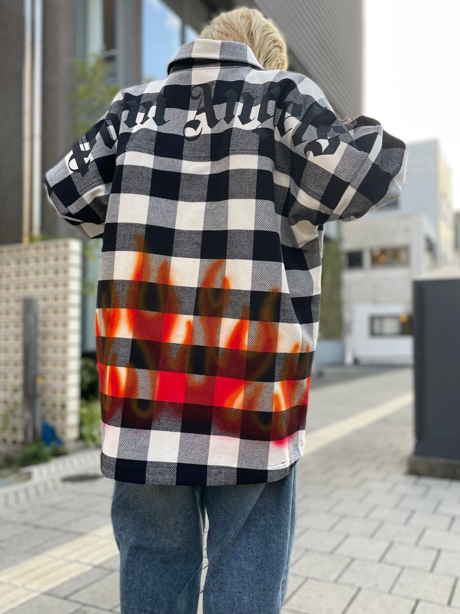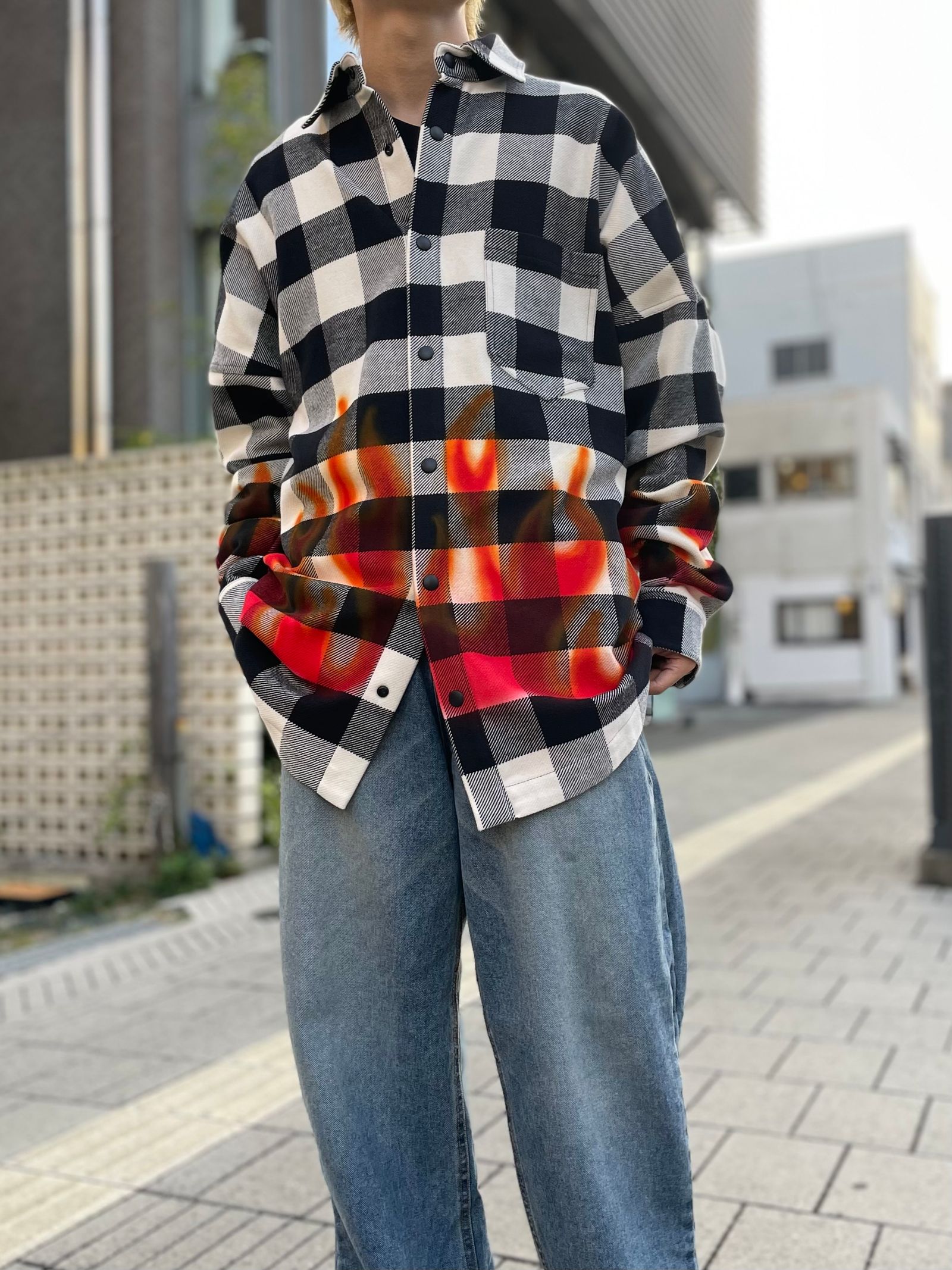 ブランドを象徴とする圧倒的な存在感を放ったバックロゴと大胆にファイヤープリントを施したオーバーサイズシャツ。