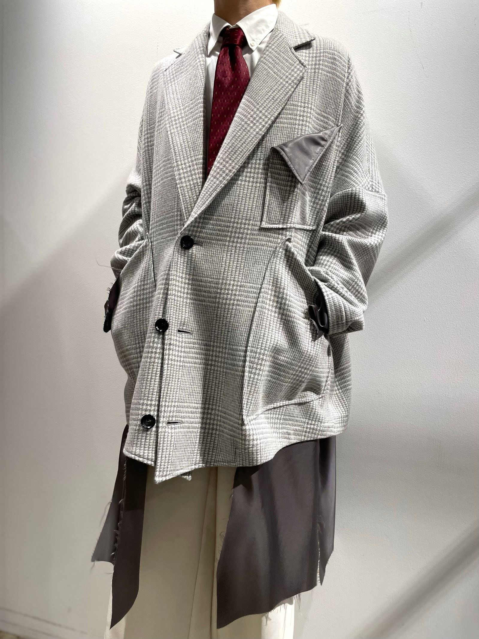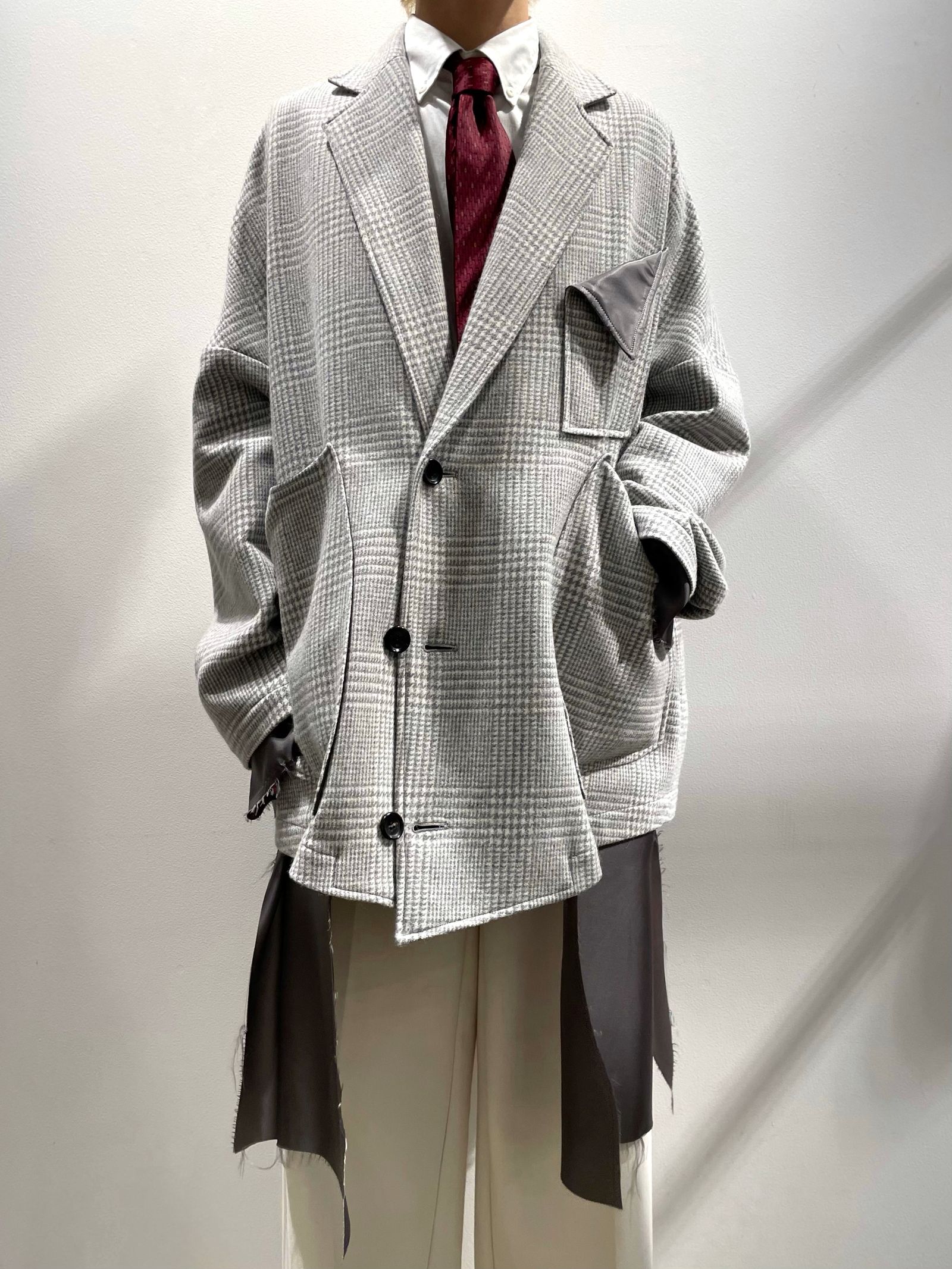 グレーやホワイトなどのモノトーンカラーが織りなす、タータンチェックが魅力のオーバーサイズコート。