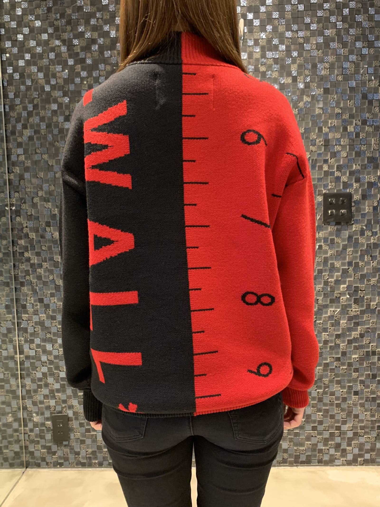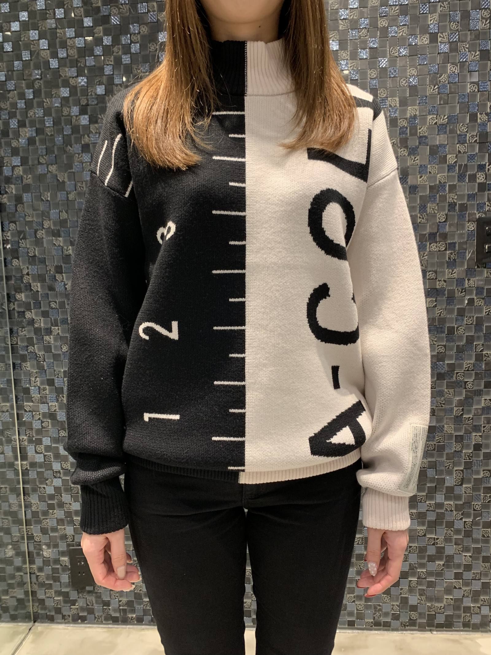 ペアでの着用にも! バイカラー切替のハイネックロゴニット