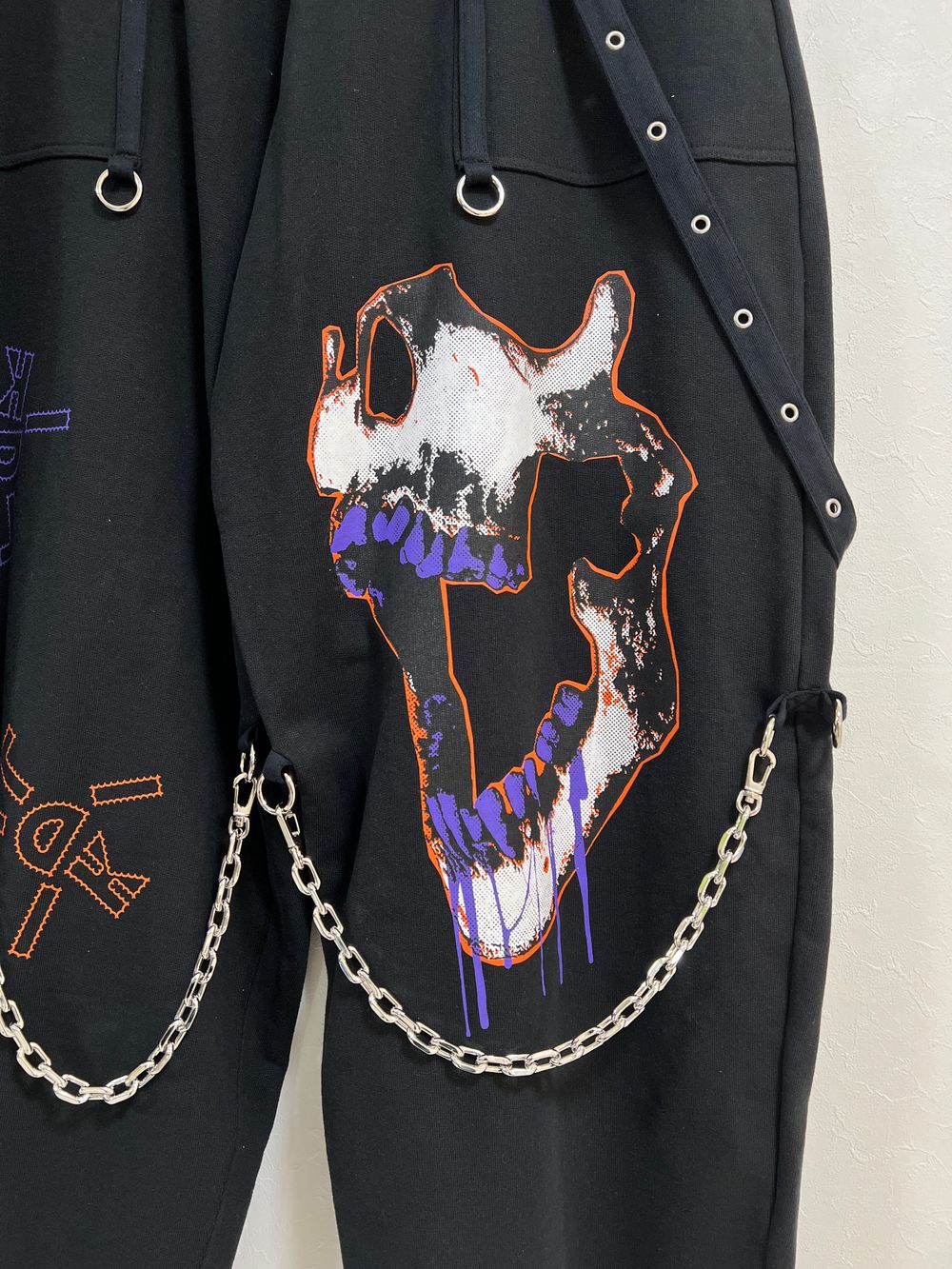 初めにご紹介させていただくのは、自身も購入させて頂いた、ボンテージパンツ調のスウェットパンツです。