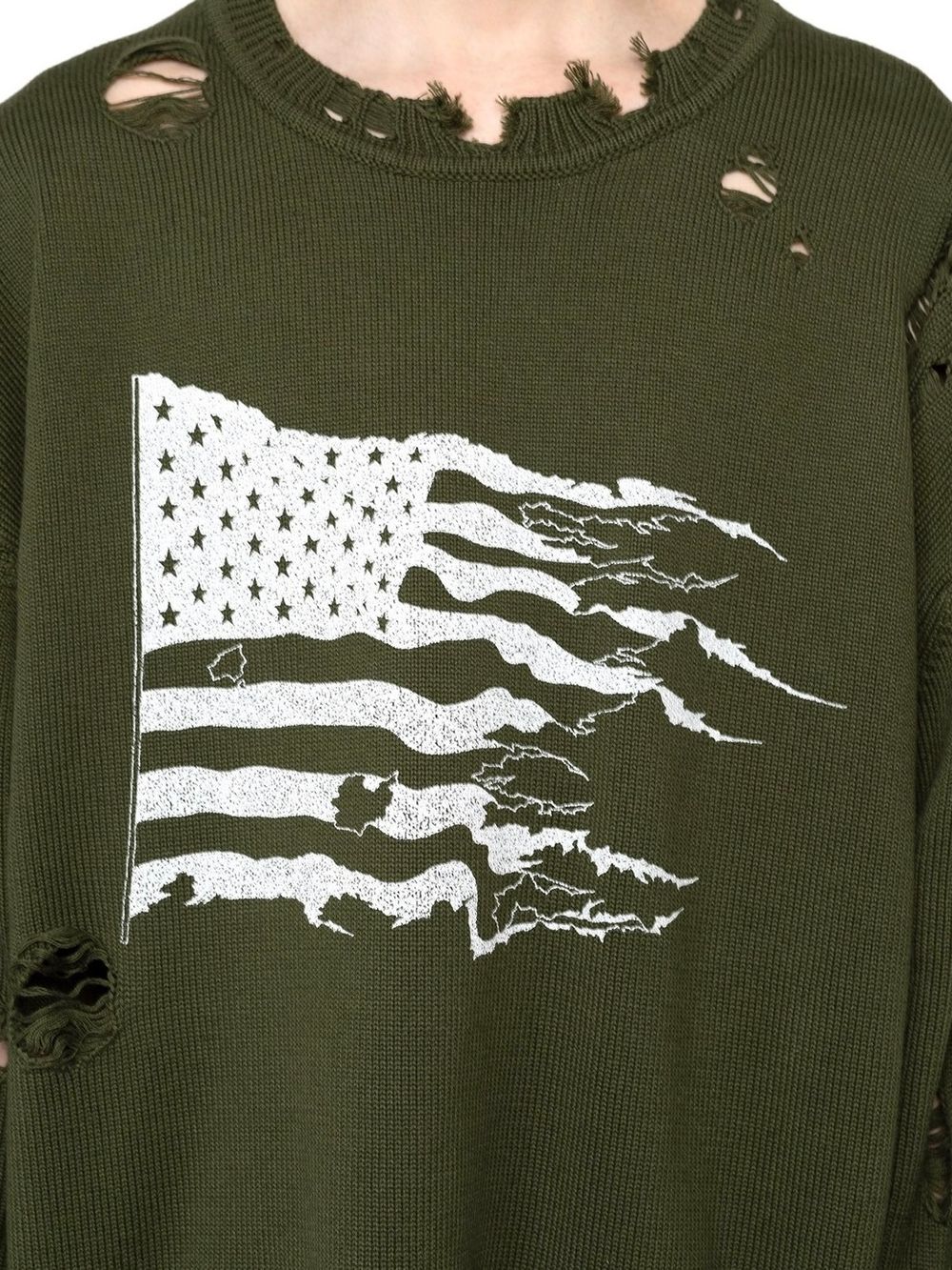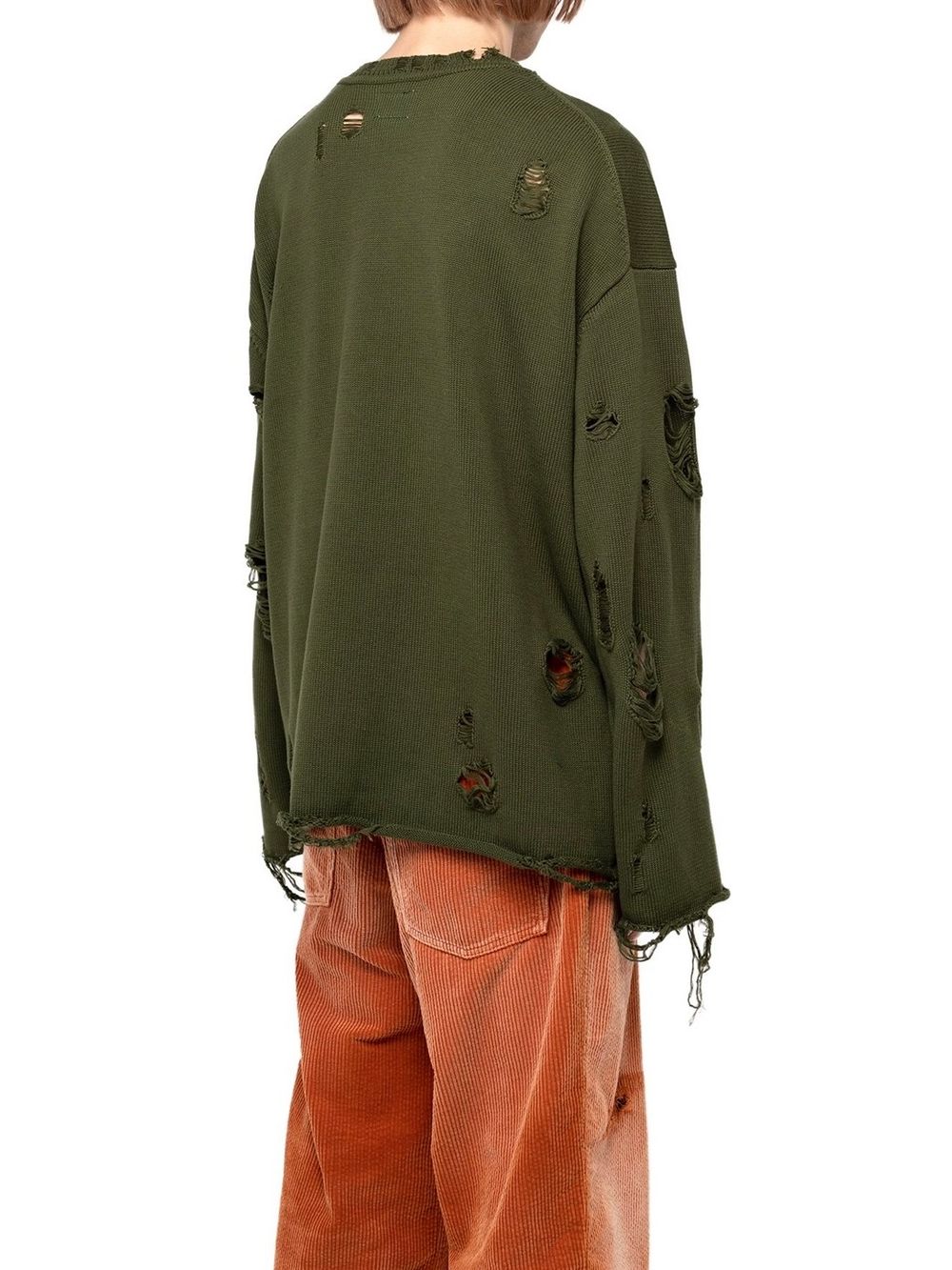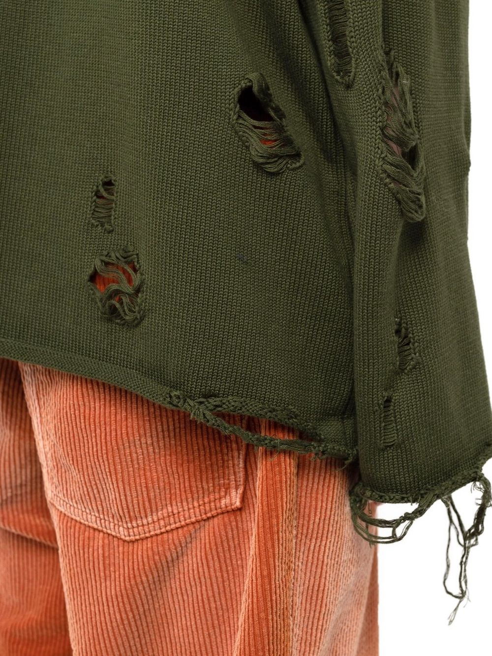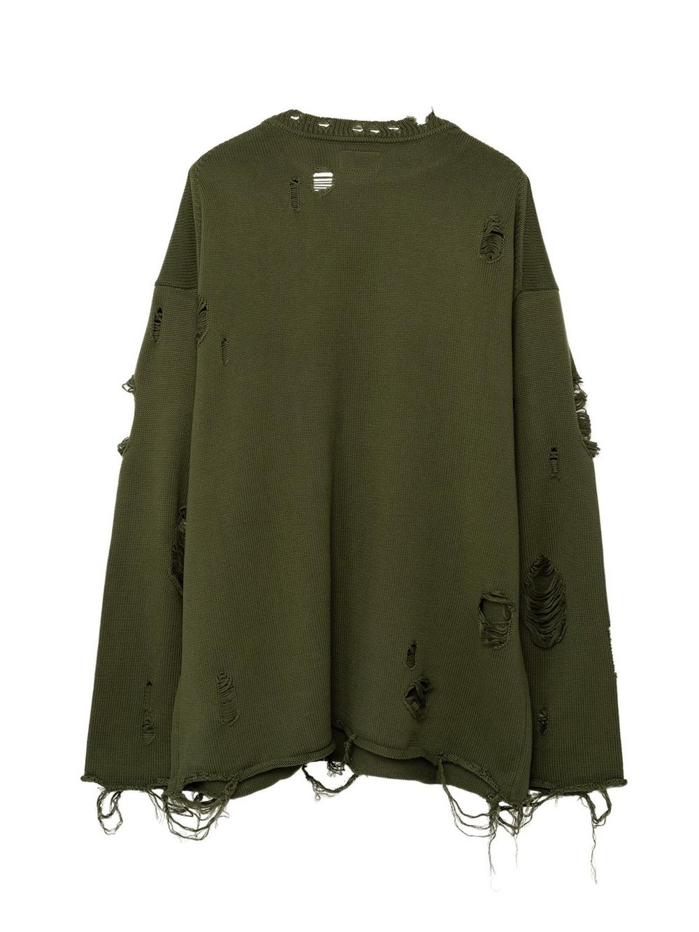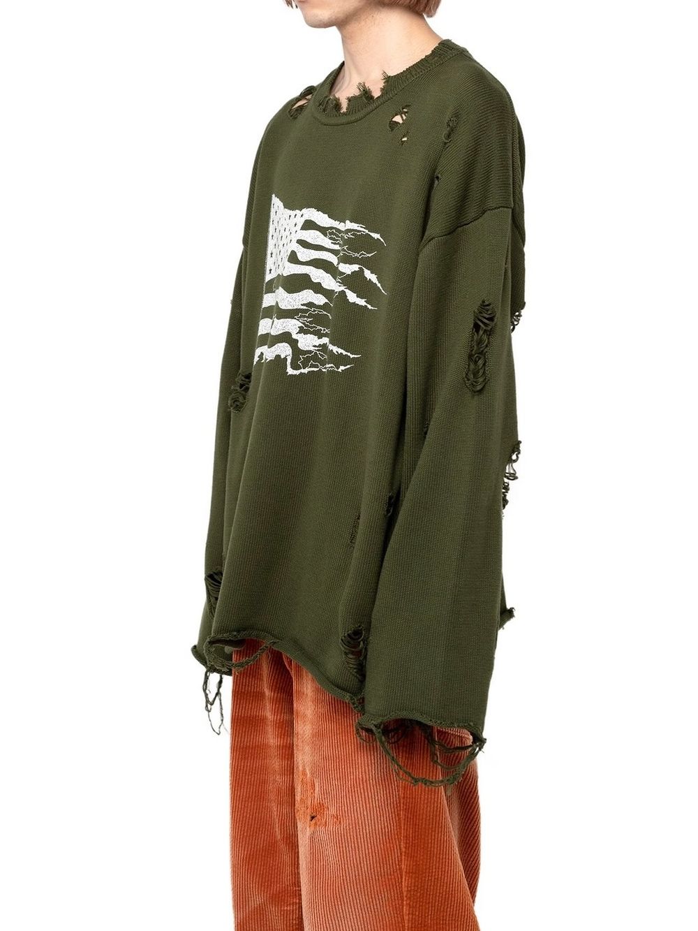 次にご紹介させていただくのは、アイテム全体にダメージ加工を施した、プルオーバーニット。
