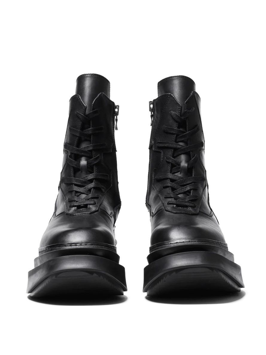 RICK OWENSの定番人気スニーカーをハイボリュームにリデザインした一足。LOO(牛革)素材を使用している為、履き心地も良く、経年変化もお楽しみいただけます。レザーの光沢感とボリューム感が相まって、ワイドシルエットのパンツと合わせた際にも、負けないくらいに存在感を放ちます!