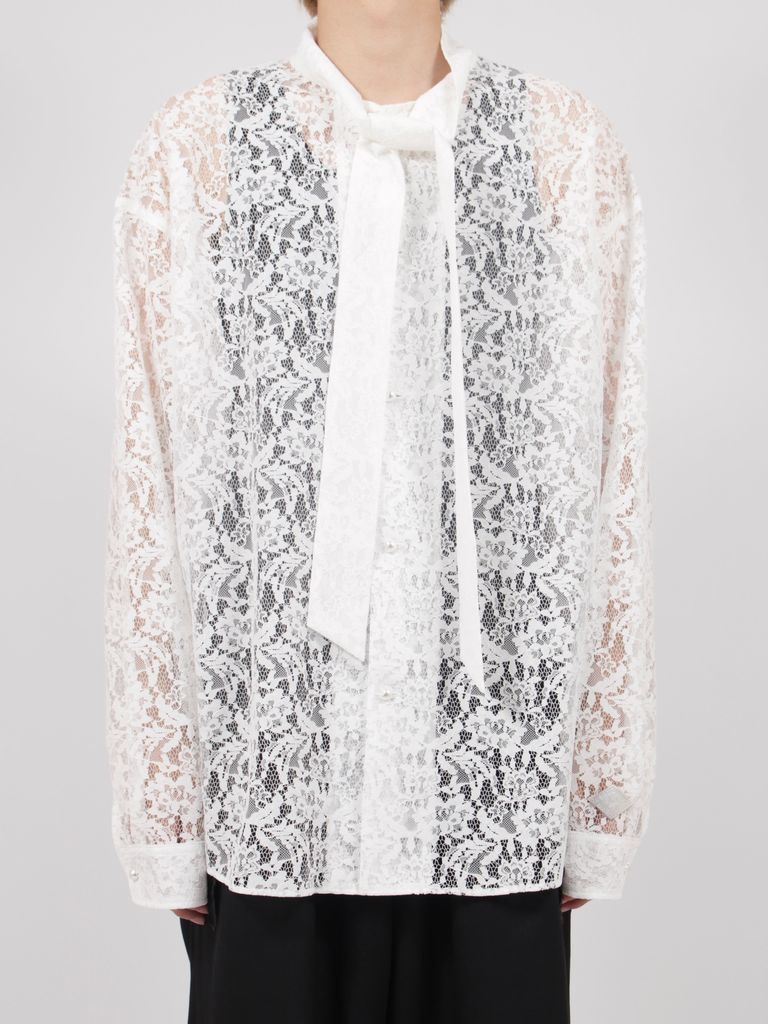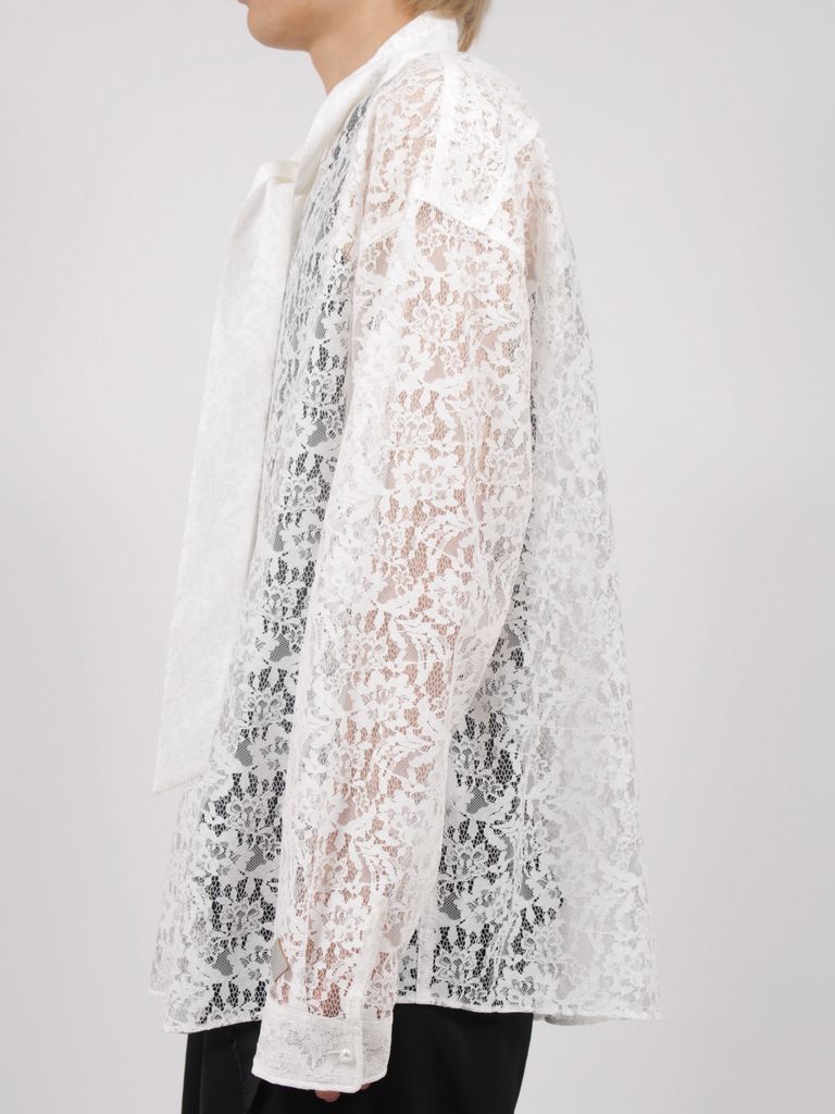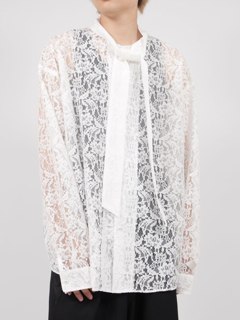 【26AW】フラワーレース ボウタイ シャツ / FLOWER LACE BOW TIE SHIRT / ホワイト