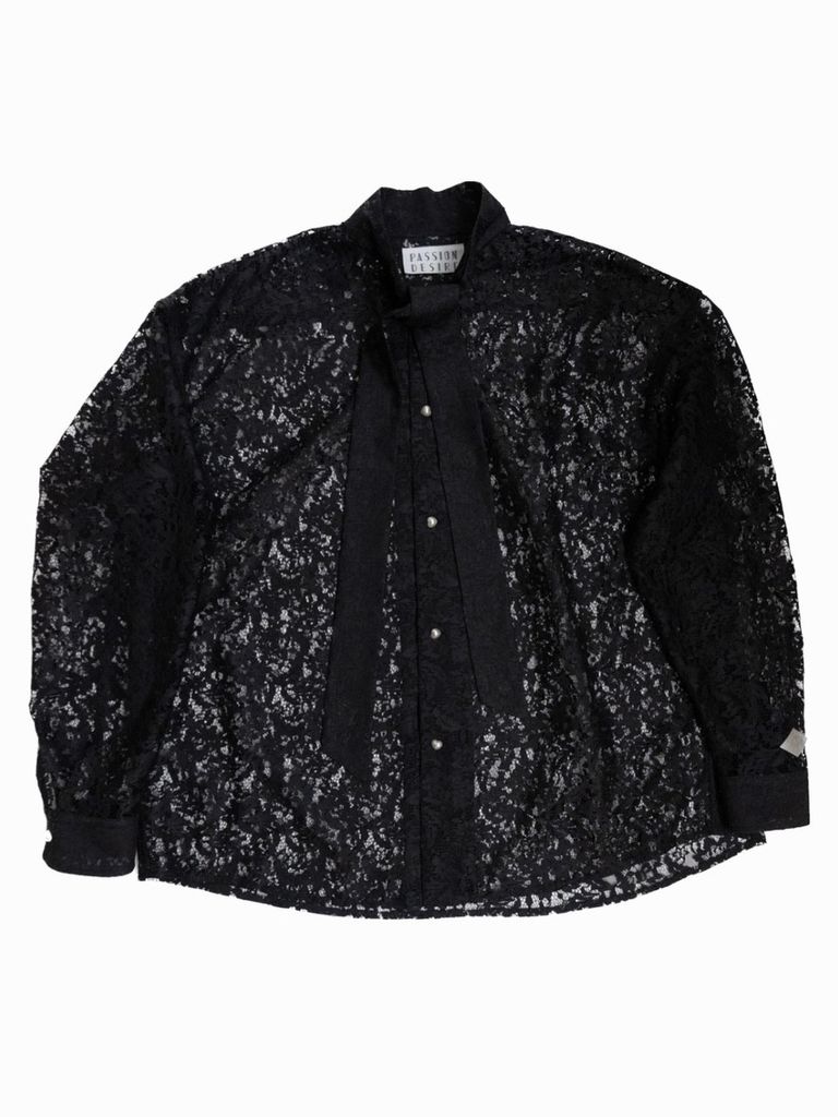 【26AW】フラワーレース ボウタイ シャツ / FLOWER LACE BOW TIE SHIRT / ブラック