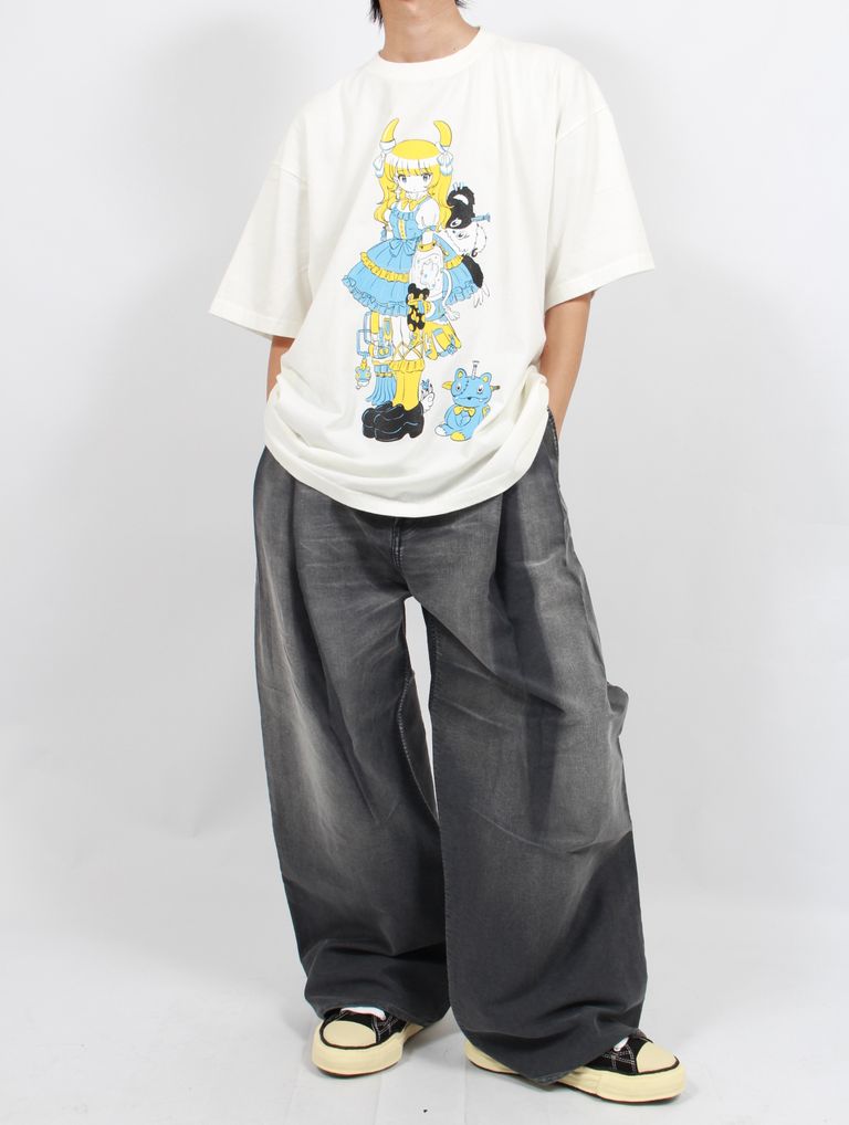 【25SS】ロリータ ガール Tシャツ ハード ウォッシュ アートワーク バイ カエ タナカ / LOLITA GIRL T-SHIRT HARD WASH ARTWORK BY KAE TANAKA / ウォッシュ ホワイト