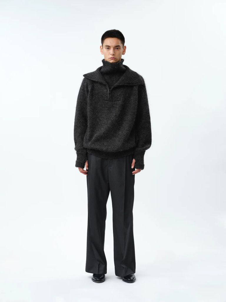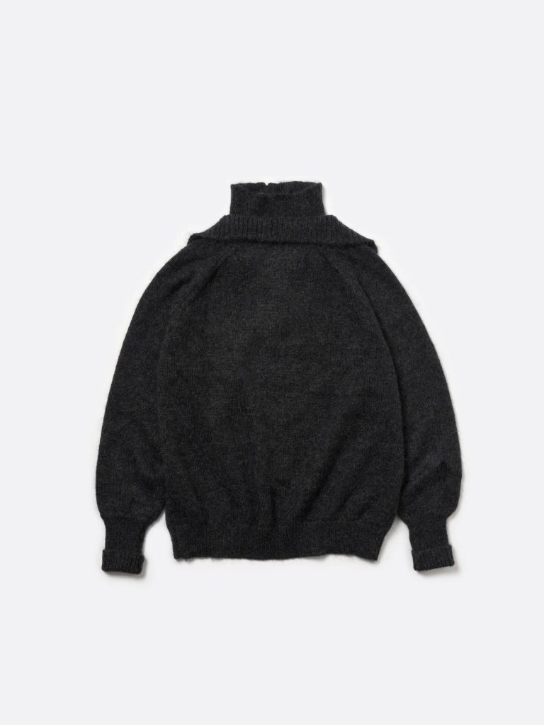 モヘア ダブル ハイネック プルオーバー ニット トップス / MOHAIR DOUBLE HIGH NECK P/O KNIT .12 / チャコール