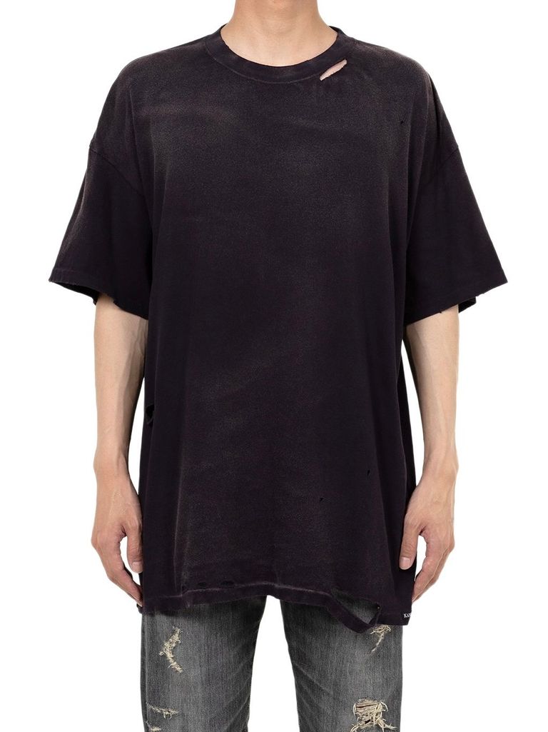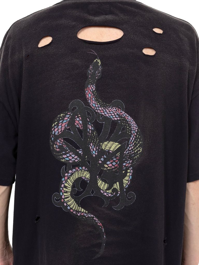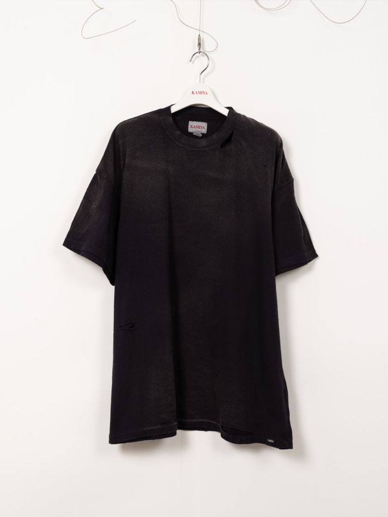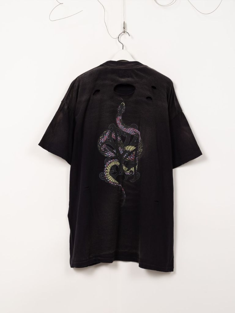 【25SS】"カミヤ-スネーク" ディストレスド Tシャツ 半袖 カットソー / “KMY-SNAKE” DISTRESSED TEE / ブラック