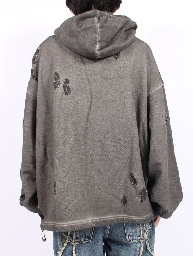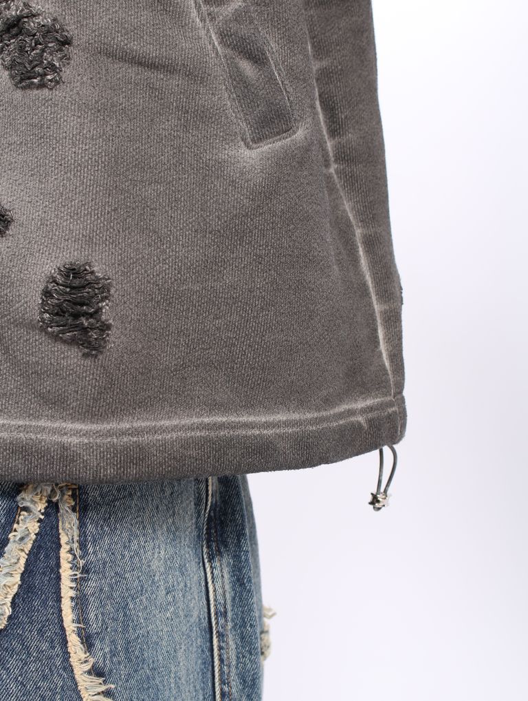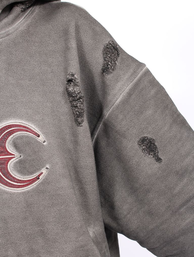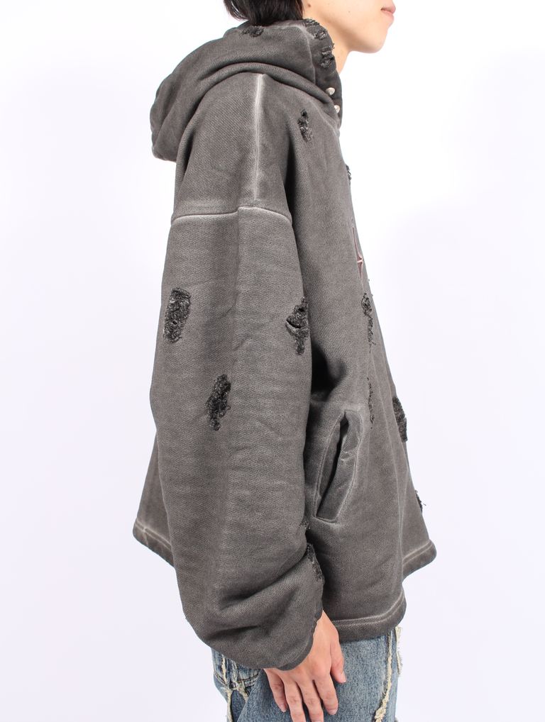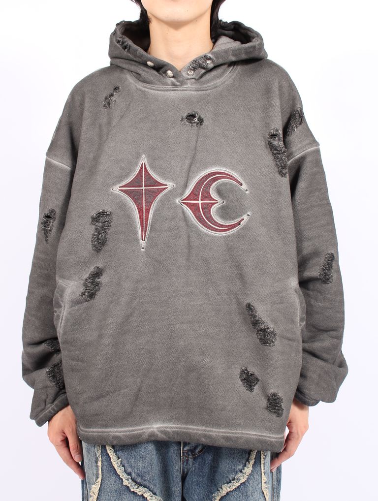 【25AW】ロック フーディー TCロゴ レザー ダメージ加工 パーカー / ROCK HOODIE / グレー