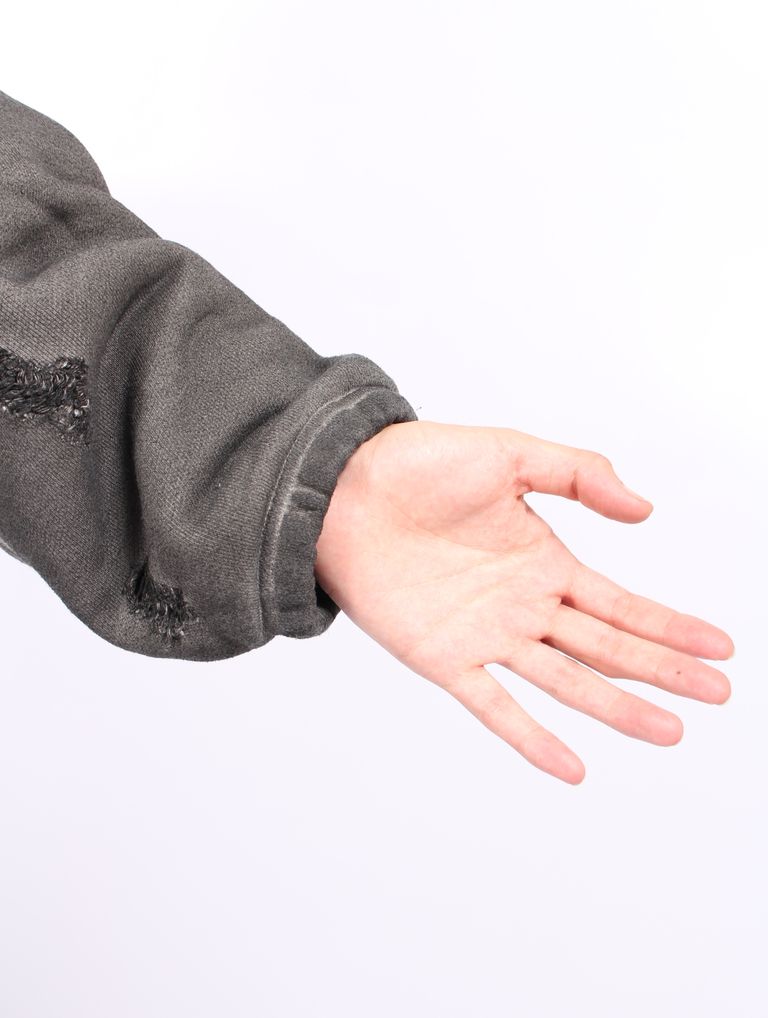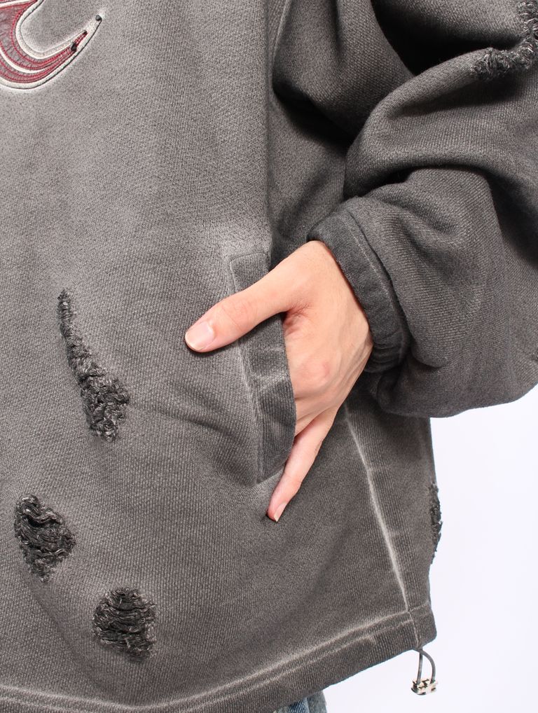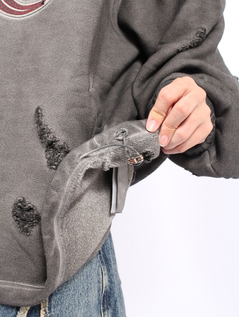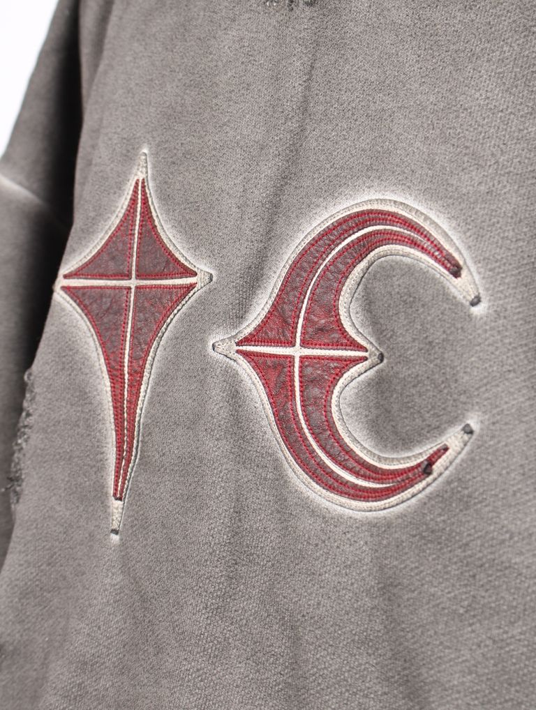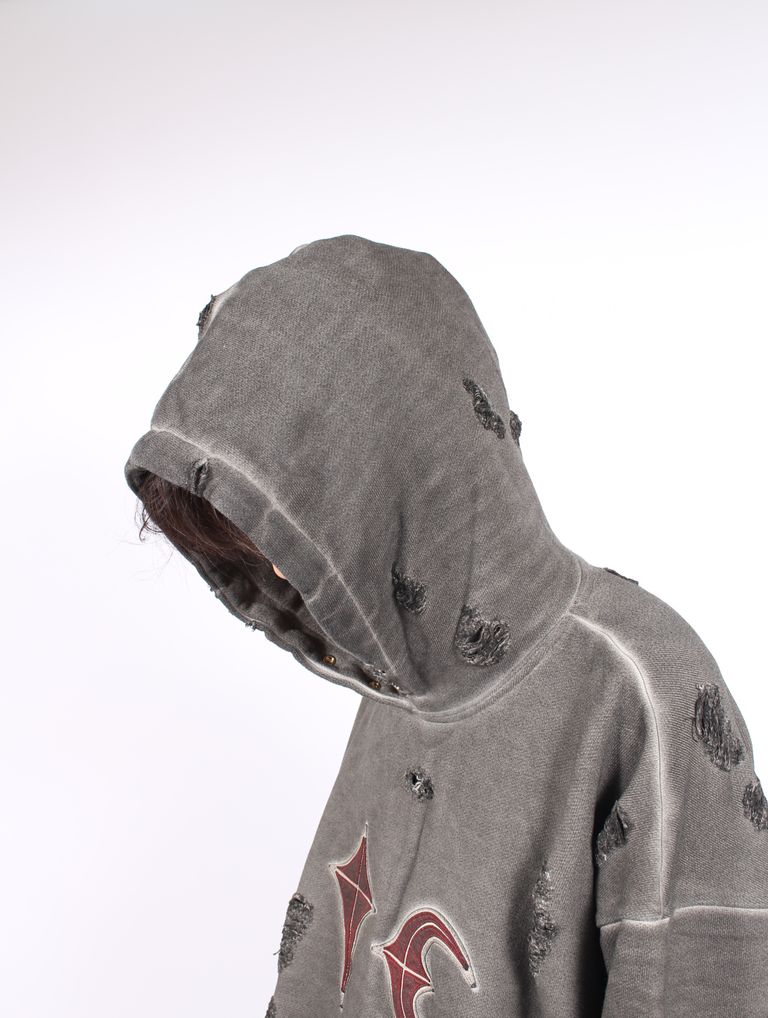 【25AW】ロック フーディー TCロゴ レザー ダメージ加工 パーカー / ROCK HOODIE / グレー