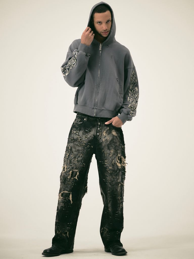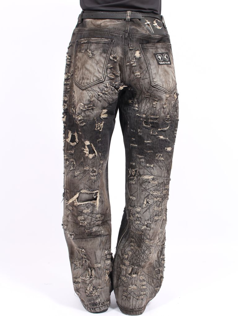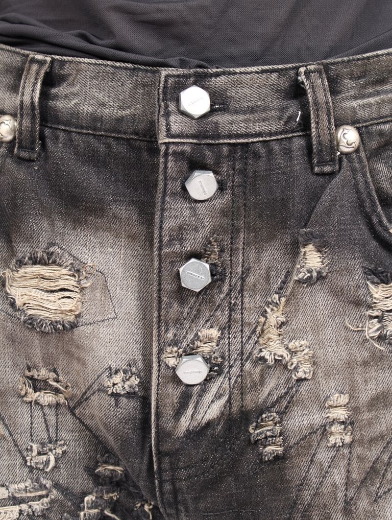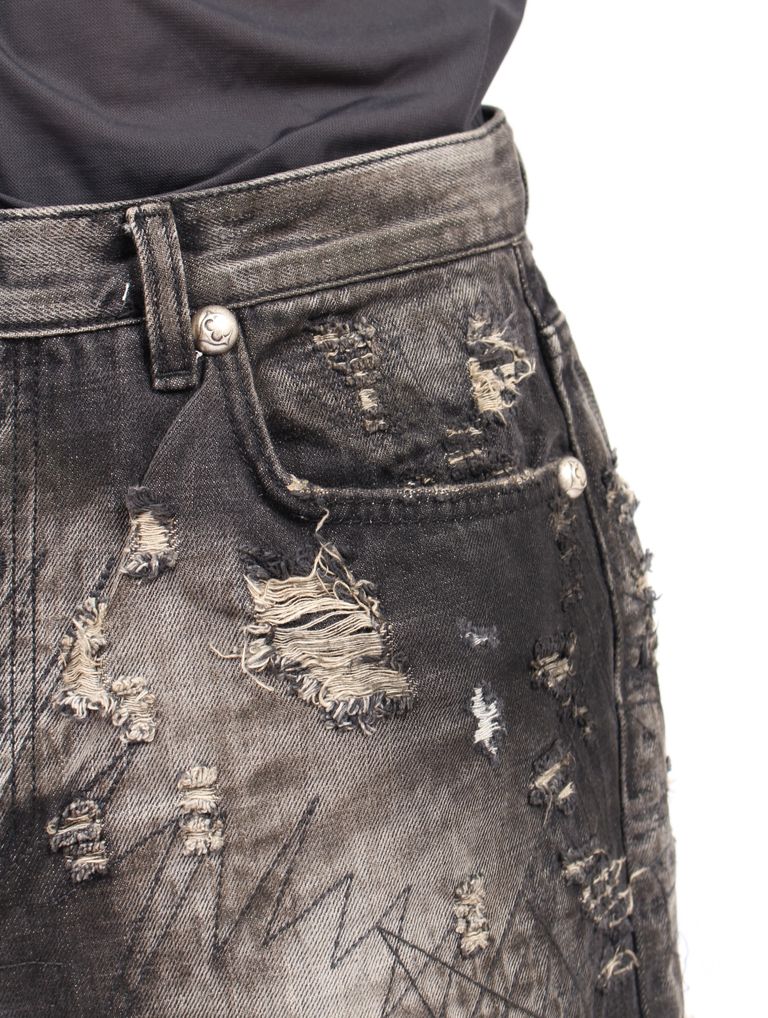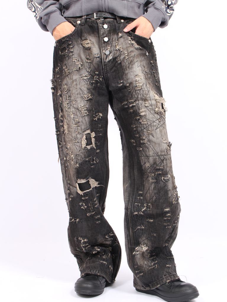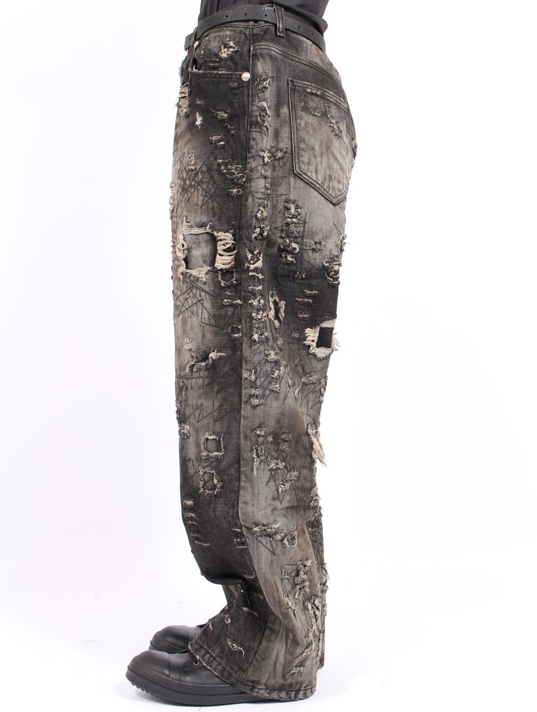 【25AW】ハードウォッシュド ダメージ デニム パンツ / HARD-WASHED DAMAGED DENIM PANTS / ブラック