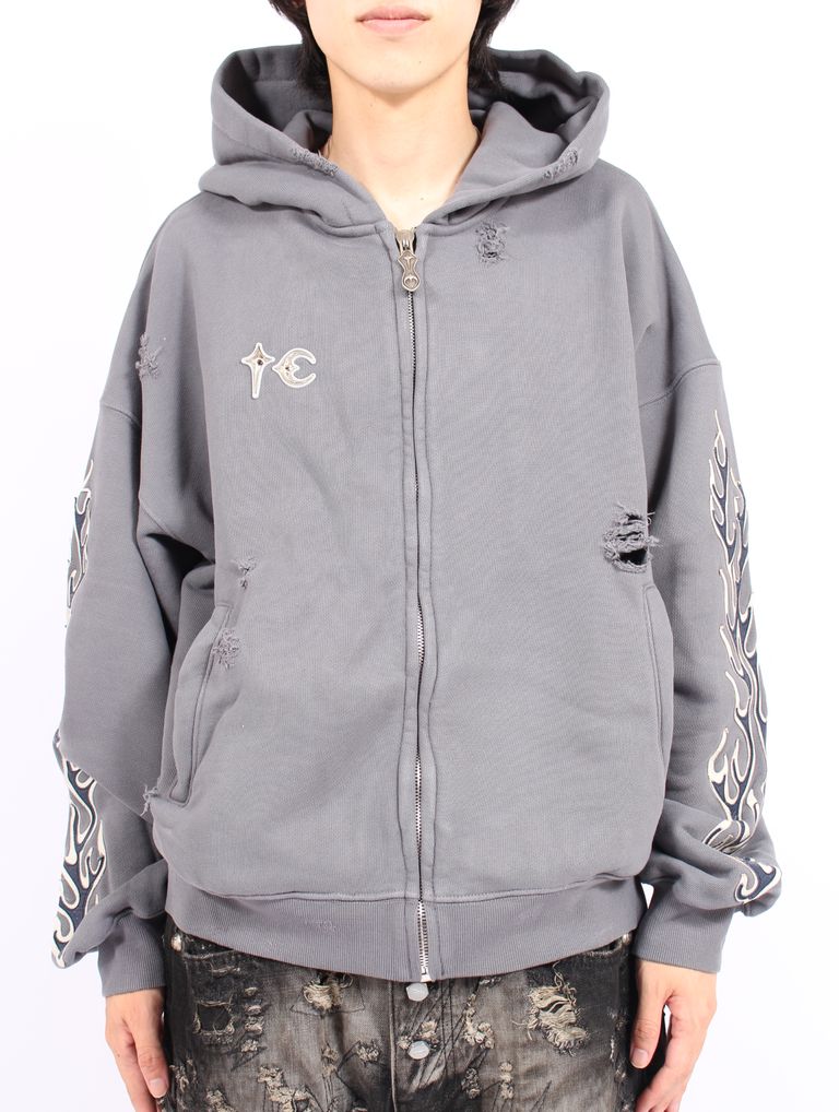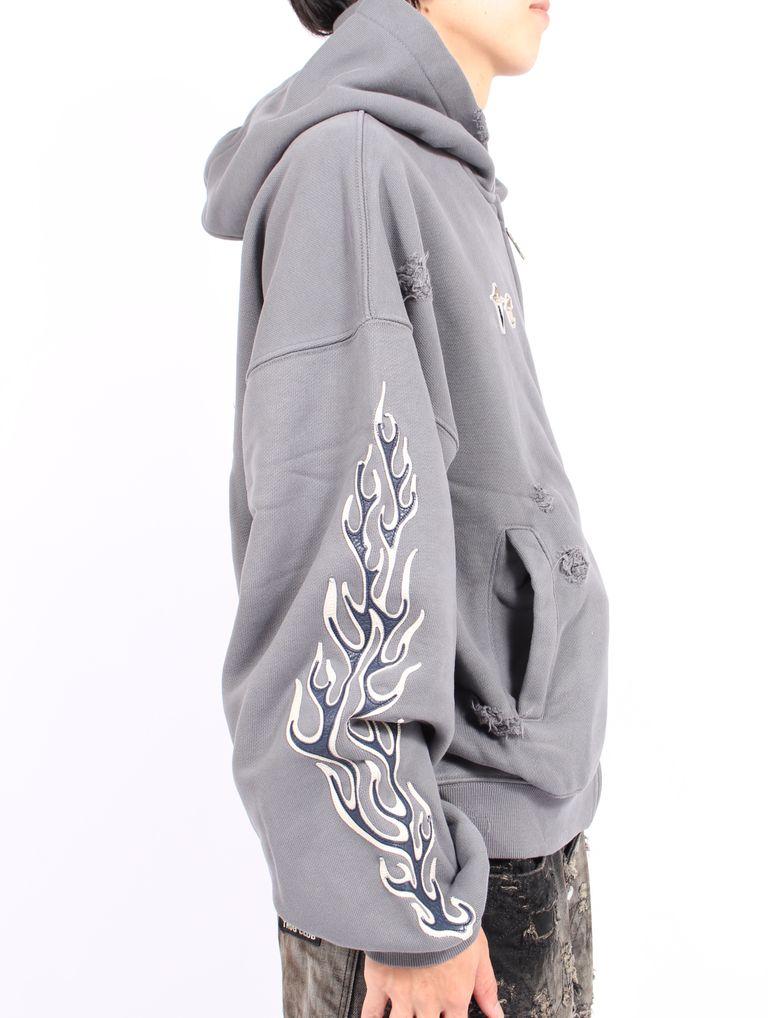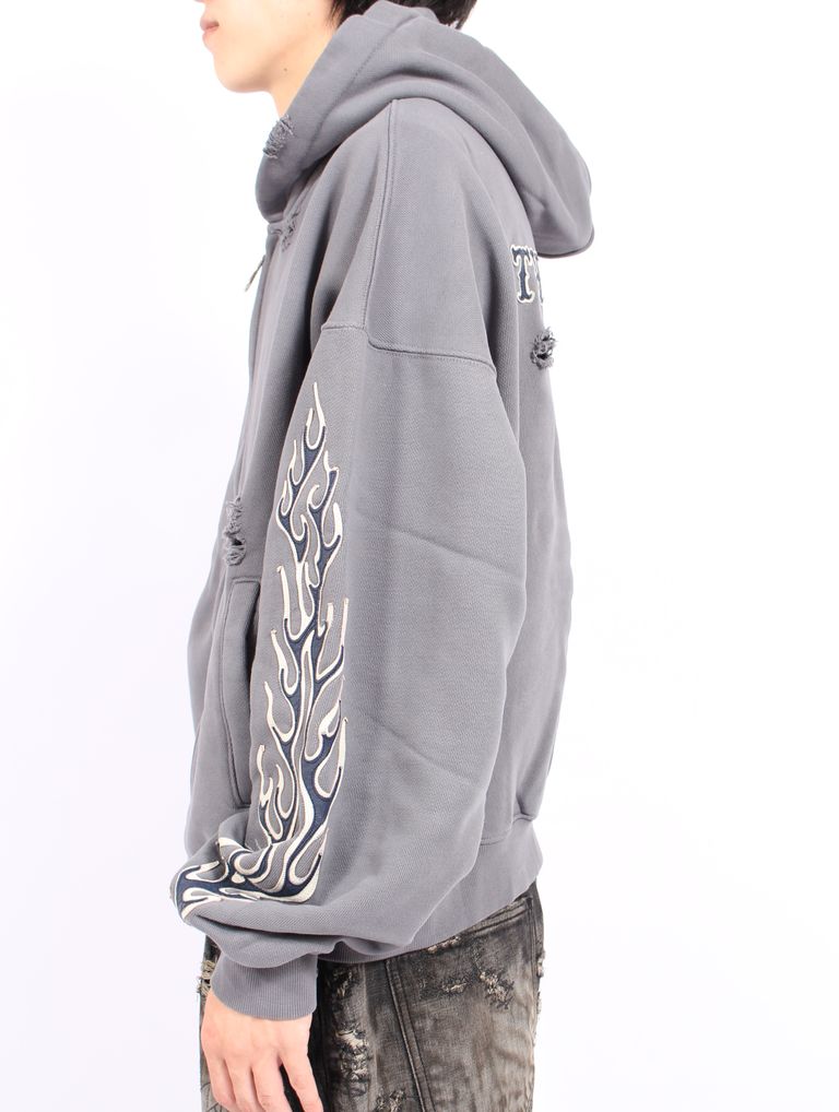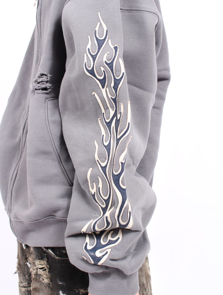 【25AW】レザー フレーム ジップアップ パーカー / LEATHER FLAME HOODED ZIP-UP / グレー