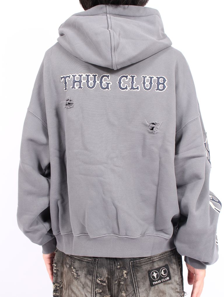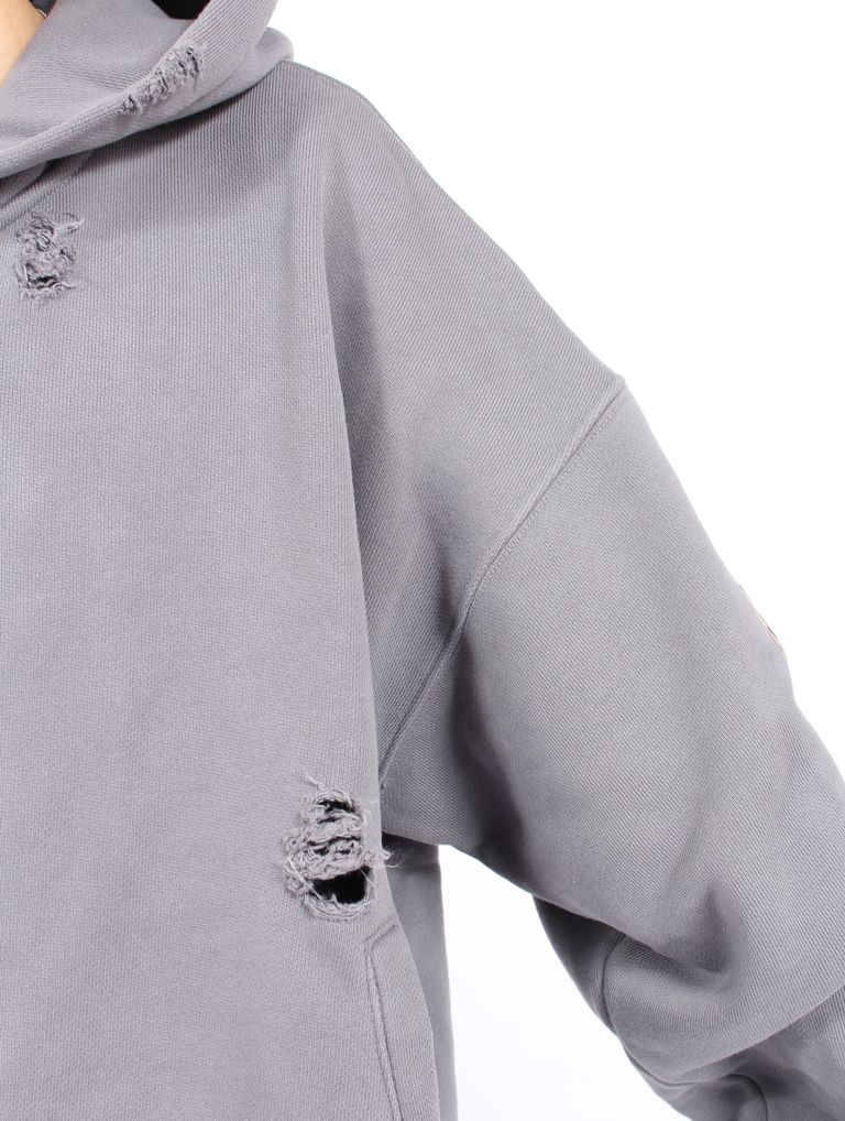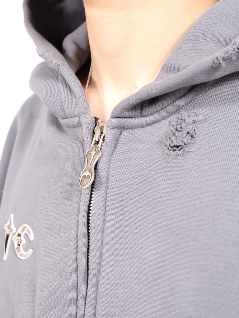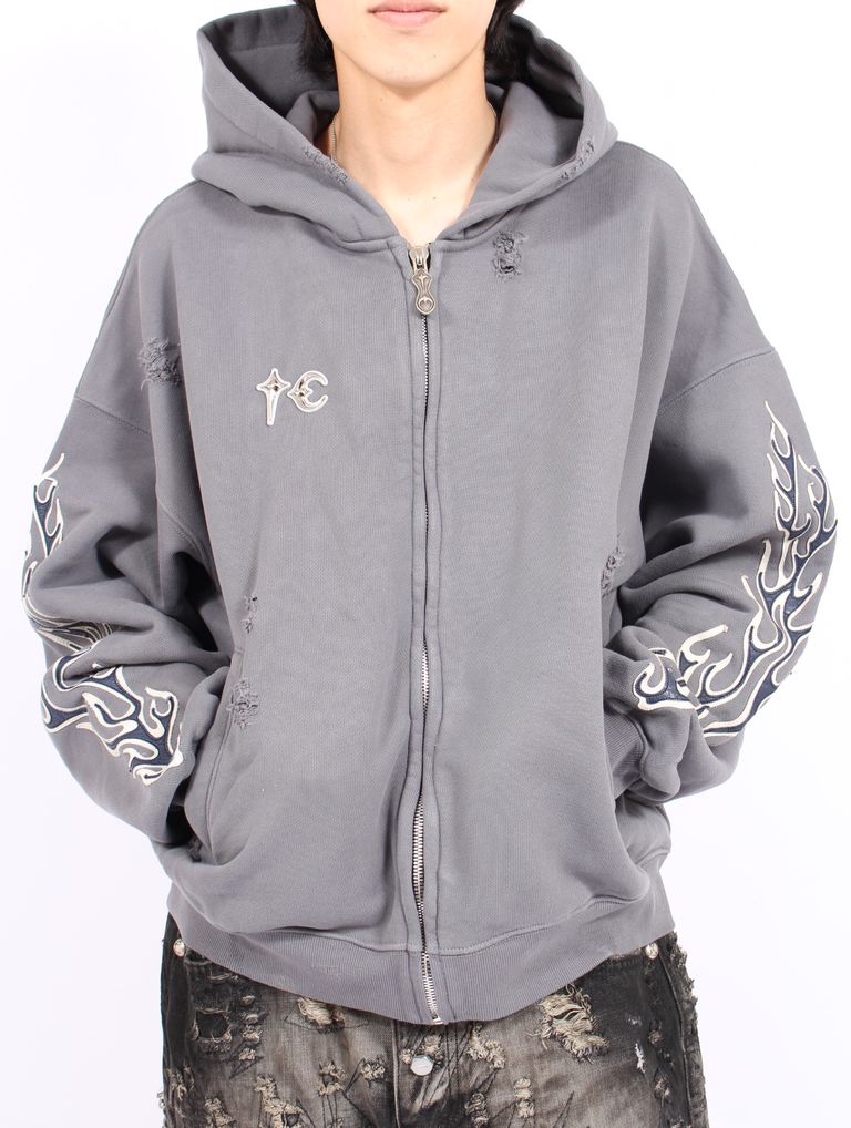 【25AW】レザー フレーム ジップアップ パーカー / LEATHER FLAME HOODED ZIP-UP / グレー