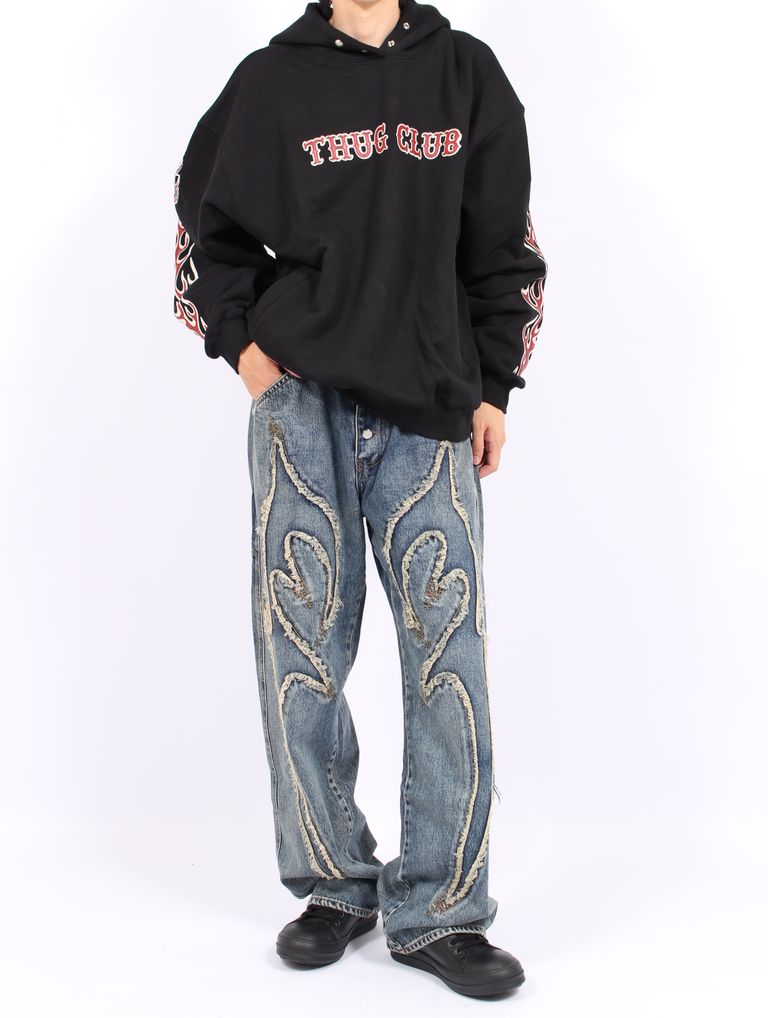 Thug Club 【25AW】レザー フレーム パーカー / LEATHR FLAME HOODIE / ブラック ¥77,000 税込 1,400 ポイント還元 発送目安日:1–2営業日 この商品は 送料無料 でお届けします 注文 サイズ(採寸)情報 質問する お気に入り コーディネートをリクエストする お電話でもご注文いただけます!お電話の際は 商品番号:13065 をお知らせください。 電話をかける 086-234-1378 サイズ 肩幅 袖丈 身幅 着丈 2(M) 66cm 63cm 71cm 66cm 3(L) 68cm 65cm 73cm 68cm 単位:cm 商品説明 ■着用モデル情報身長183cm,体重58kg,男性着用サイズ:3 無料会員登録で300円OFFクーポンプレゼント "無料会員登録で300円分のポイントをプレゼント"STORYでは新規会員登録で、すぐにご利用できる300円分のポイントをプレゼント!STORY会員様限定のお得なSALE情報や新入荷のお知らせなど、様々なメルマガも配信中!! 返品や交換対応について "返品や交換対応について"商品が到着しましたら、「商品に不良箇所がないか」、「ご注文内容に誤りがないか」を必ずご確認ください。商品不良や発送商品の誤りがある場合は、直ぐにご連絡いただけますと幸いです。状況をご確認後、交換もしくは返品対応をさせていただきます。「イメージと違った」「サイズが合わない」など、お客様のご都合による返品は、下記の<返品可能条件※>を満たしていれば承ります。※必ずご確認をお願いいたします。以上をご確認のうえ、商品の返品を希望される場合は、staff@story.style まで直接お問い合わせのうえ、お手続きをお願いいたします。商品のサイズ交換につきましては、弊社にご希望されるサイズのご用意がある場合に限り、ご対応させていただきます。こちらも詳しくはお気軽にお問い合わせくださいませ。<返品可能条件> 以下全てに当てはまる必要がございます。・商品の到着から3日以内に返品希望のご連絡をいただいた場合・当店基準により「未使用品」と判断できる商品・商品ページに返品不可の旨が記載されていない商品・下記返品不可の事項に当てはまらない商品以下の条件に当てはまる場合は返品をお受けすることができません。①事前のご連絡がないまま商品をご返送された場合。②お客様が該当商品をクリーニング、お直し、洗濯をされた場合や商品に汚れ、傷、においが付着していたり使用感がある場合。③「納品書・商品タグ・ラベル」を破損や汚損、または紛失された場合。④商品(箱・付属品も含む)を弊社へご返送いただいた時の状態が、お届け時と大きく異なる場合。④パッケージを開封した商品(パッケージが商品の一部となっているCDや小物など)⑤ギフトラッピングサービスをご利用された商品。⑥ご試着が不可能とされるインナー(タンクトップやTシャツ)、下着、靴下、ピアス、香水、インソールなどの衛生商品、ケア用品。⑦セール/アウトレット商品、お取り寄せ商品、予約商品、福袋/福箱、一度サイズ交換をお受けした商品。⑧アクセサリー/ジュエリーなどの貴重品や小物類(ネックレス、ブレスレット、リング、サングラスなど)ご返金に関する注意事項①クレジットカード決済または楽天ペイでご注文いただき、決済の取消しが可能な場合は、決済取消し対応をさせていただきます。決済の取消しができない場合には、銀行振込でご対応をさせていただきます。なお、クレジットカードでお支払いの場合、分割手数料は返金対象外とさせていただきます。②お客様から送信される情報は、すべて「SSL/TLS」を用いた暗号化を施し、安全に管理をしております。③ご注文のうち一部を返品される場合、配送料、決済に伴い発生した手数料は返金対象外となります。返品に発生する費用商品不良や発送の誤りなどの弊社都合での返品を除き、お客様都合によるご返送の送料はお客様負担となります。ご返金につきましても、振込手数料や代金引き換え手数料等を差し引いた金額でのお振込返金となります。また、ご返金時にかかる弊社からの振り込み手数料も差し引いてのご返金となりますので予めご了承くださいませ。なお、弊社からのご返金にかかる振り込み手数料は下記の通りです。お振込金額¥100,000-(税込)未満...¥220-(税込)お振込金額¥100,000-(税込)以上...¥440-(税込)返品に関するその他の注意事項①事前のご連絡がないご返送商品のご対応はお受けできませんのでご注意ください。②靴の試し履きは必ず室内で行っていただくようお願いいたします。ご試着の際には、商品への香水・化粧品・タバコのニオイ等の付着にお気をつけください。③靴箱も商品の一部ですので、靴箱に直接発送伝票を貼ってご返送された場合返品はお受けできません。④返品される場合、返品対象商品の購入に際して付与されたポイントは取消しとなります。⑤返品時点において取消し対象となるポイント数をお客様が保有していない場合は、商品代金から不足分のポイント相当額を差し引いた金額を返金させていただきます。 サイズが不安な方へ 商品のサイズ選びに関して不安やお悩みがある場合は、お気軽
