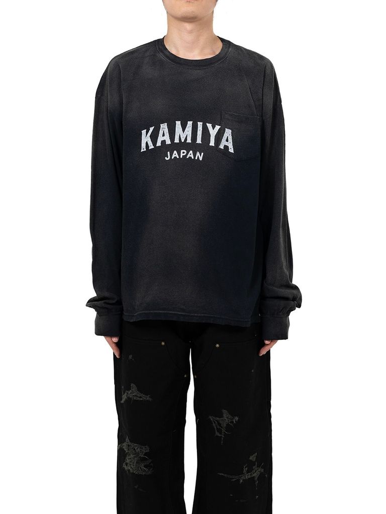 【25AW】カミヤ ロゴ ディストレスド ロング ポケット Tシャツ / "KAMIYA LOGO"DISTRESSED L/S POCKET TEE / ブラック