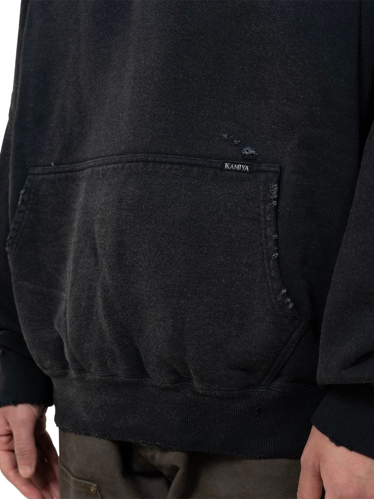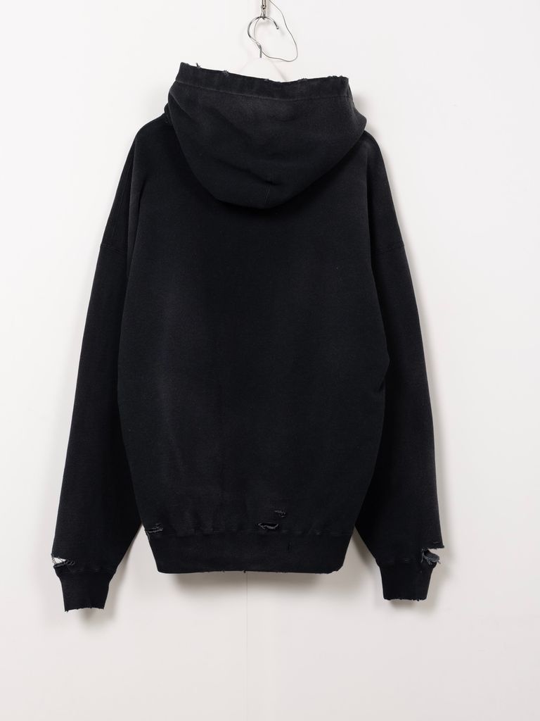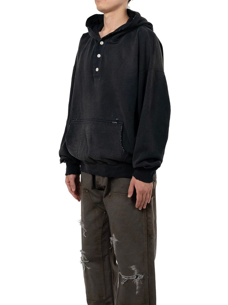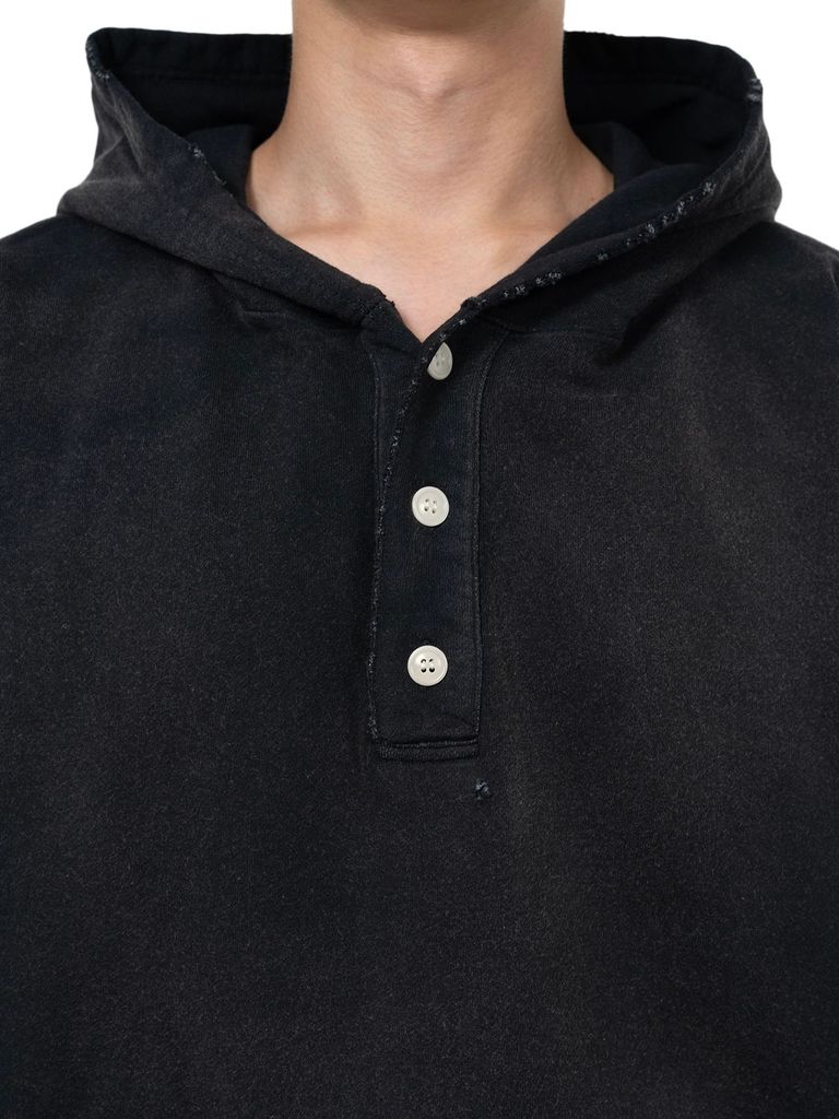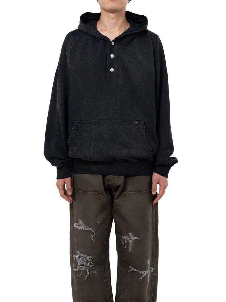【25AW】ディストレスド ヘンリーネック パーカー / DISTRESSED HENRY NECK HOODIE / ブラック
