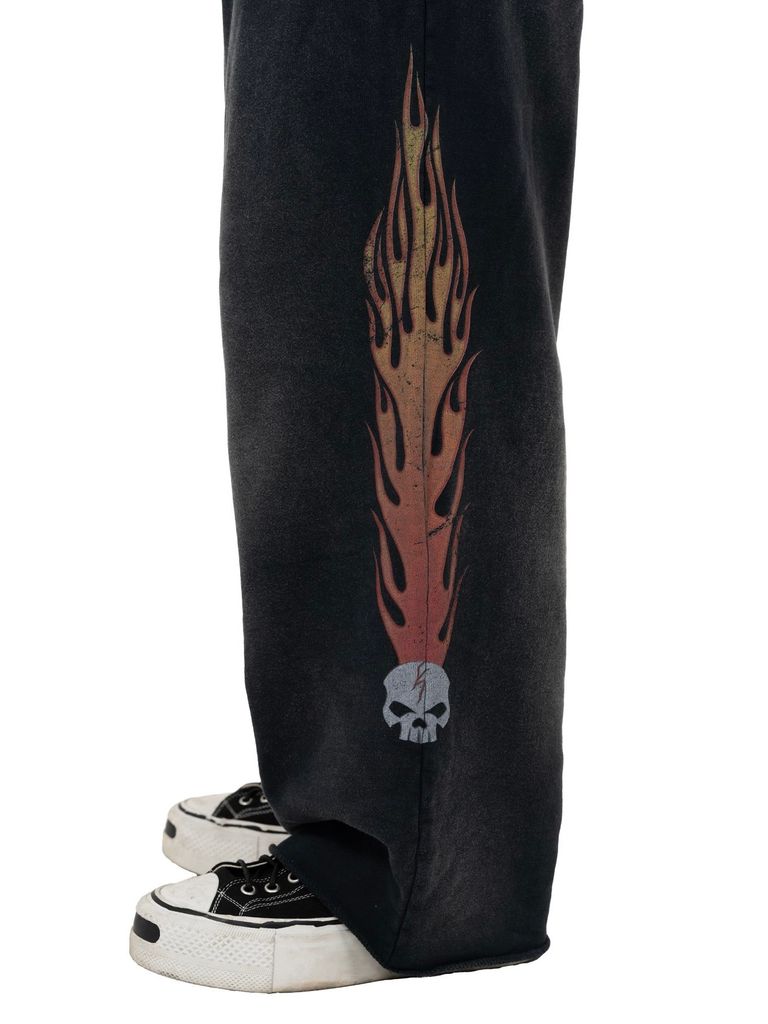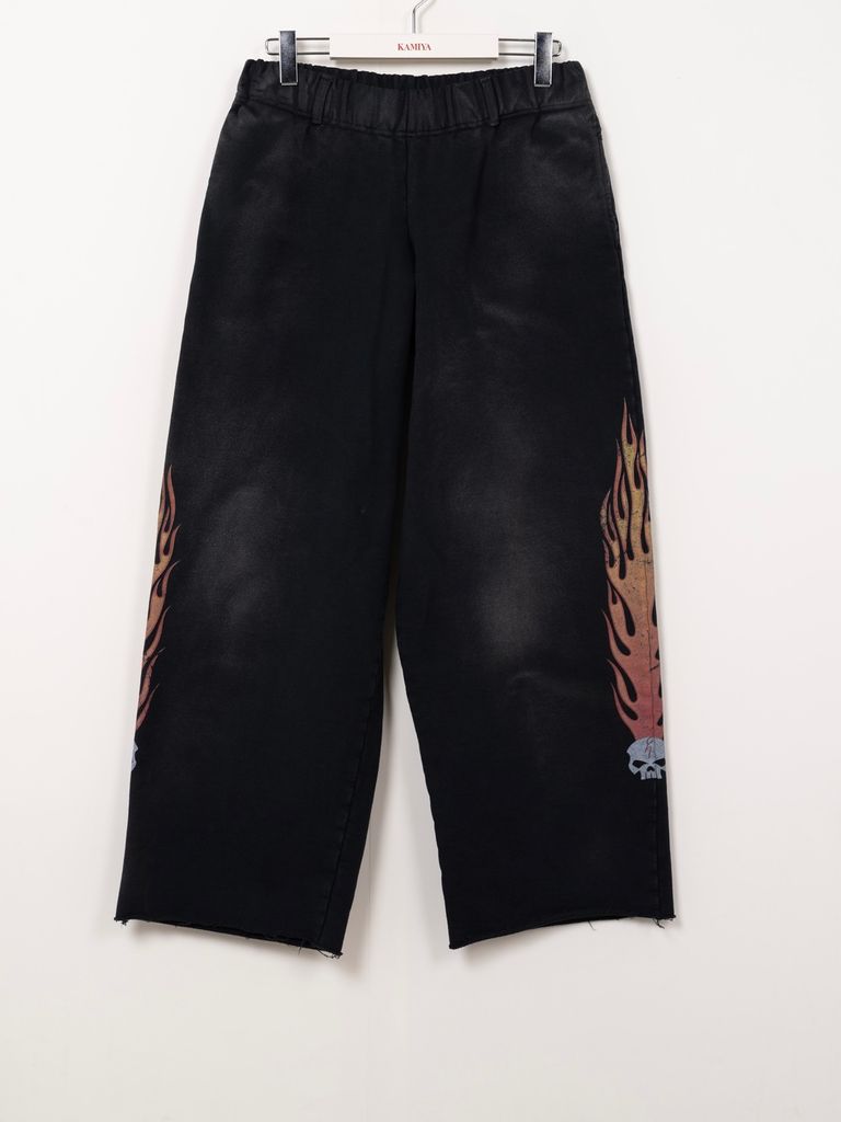 【25AW】スカル フレイム ディストレスド スウェット パンツ / "SKULL FLAME" DISTRESSED SWEAT PANTS / ブラック