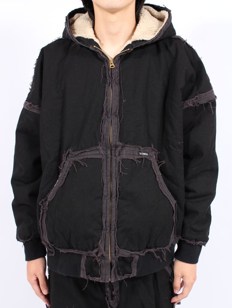 【25AW】ブラックミーンズ コラボレーション デコンストラクテッド ジップ パーカー / BLACKMEANS × KAMIYA DECONSTRUCTED ZIP PARKA / ブラック