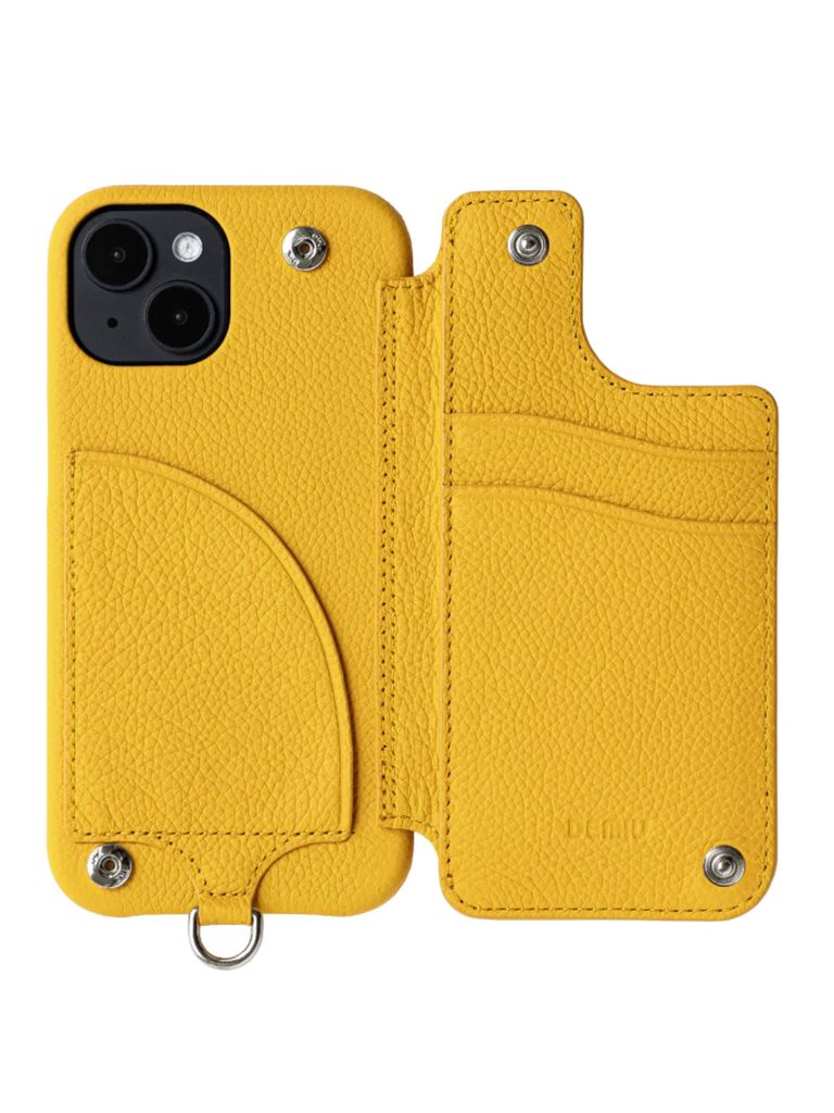 ※iPhone12 miniおよび13miniは左側(ケース装着側)の仕切り部分と、右側の裏ポケットにはカードはお入れいただけません。右側のカード入れは1段のカードスリットとなります。
