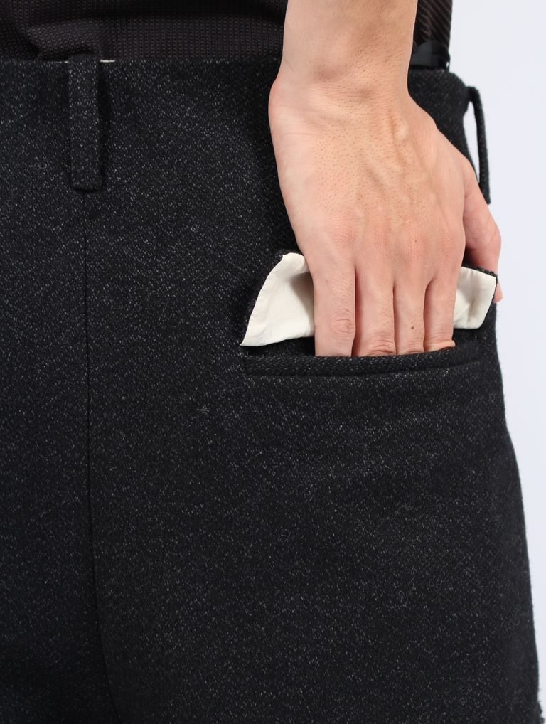 【25AW】 メンズ フィット トラウザーズ ウィズ 925 シルバー フック クローザー / MENS FITTED TROUSERS WITH 925 SILVER HOOK CLOSER / オフブラック