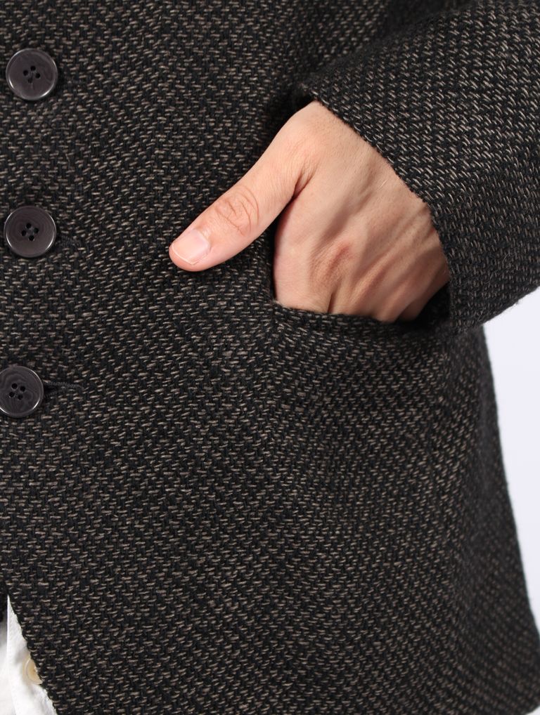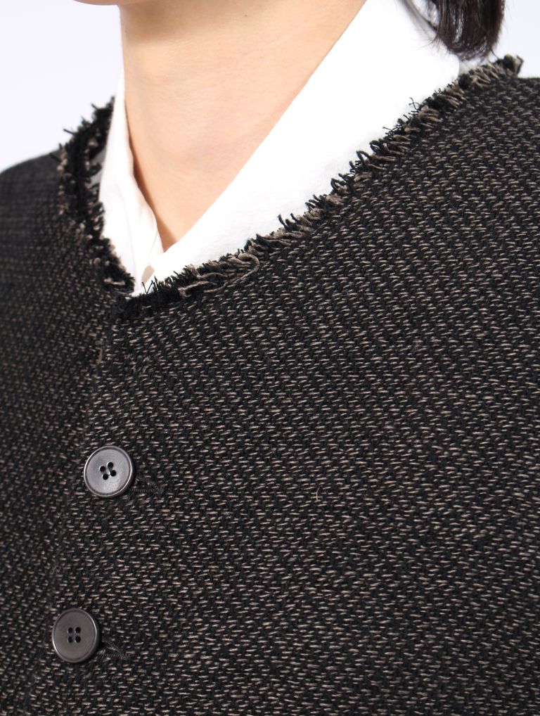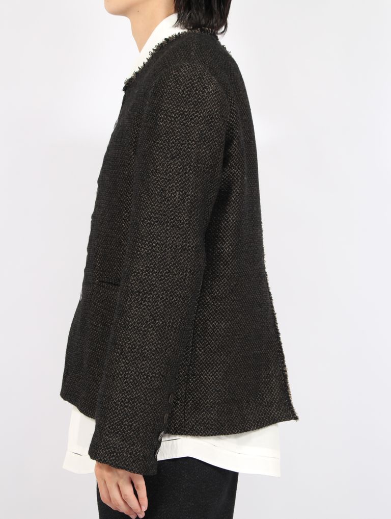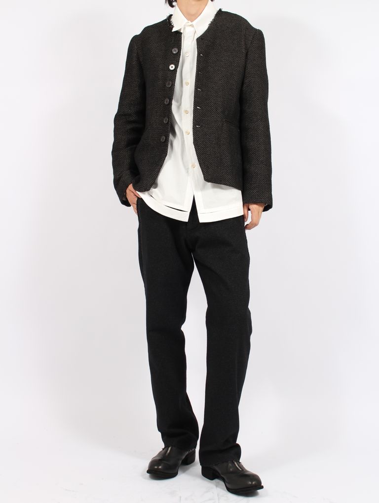 【25AW】ユニセックス フィット ラウンド ネック ショート ジャケット ウィズ 925 シルバー フック クローザー / UNISEX FITTED ROUND NECK SHORT JACKET WITH 925 SILVER HOOK CLOSER / オフブラック