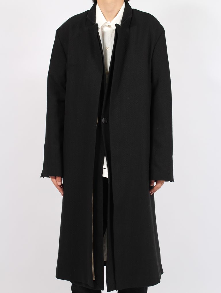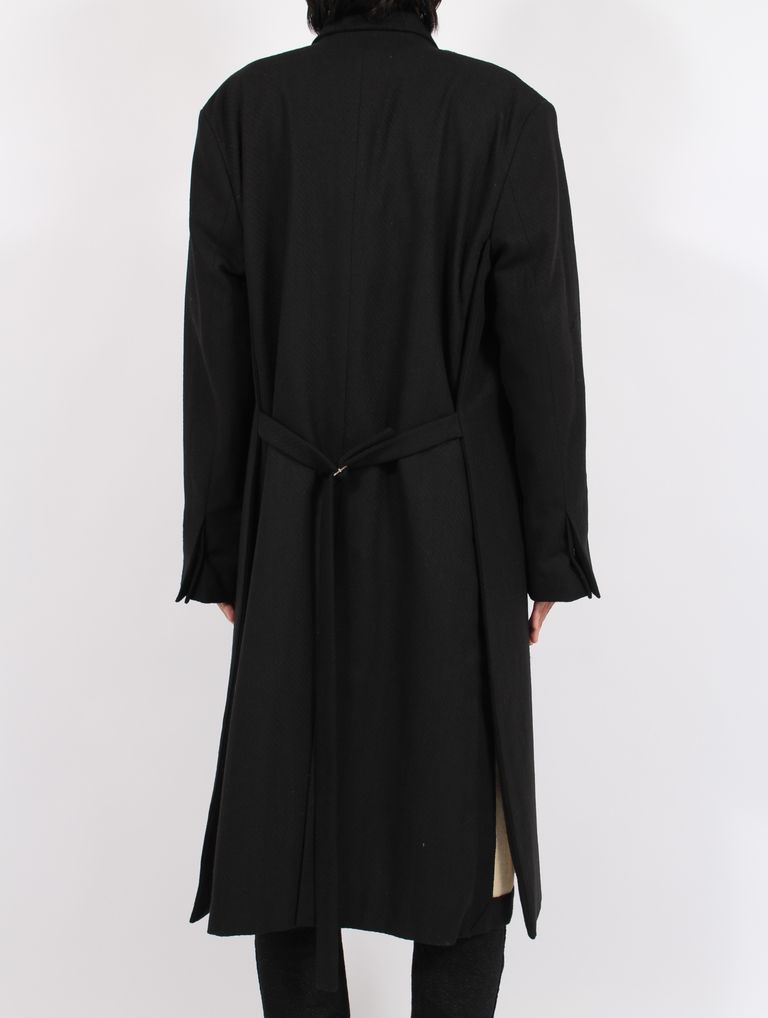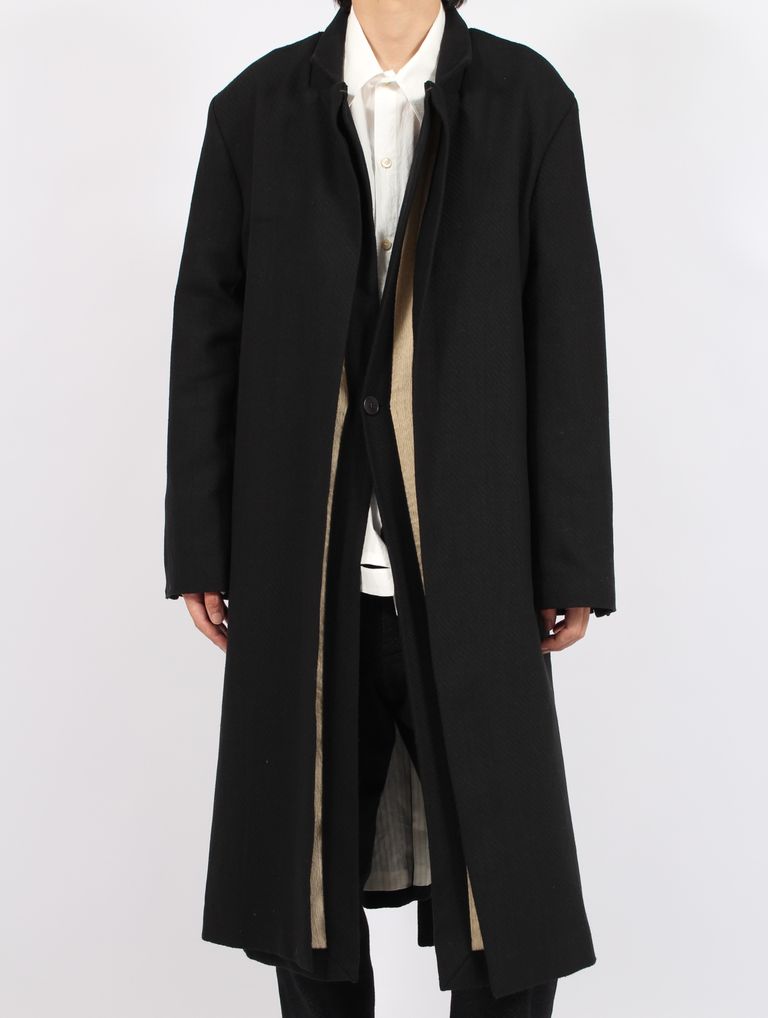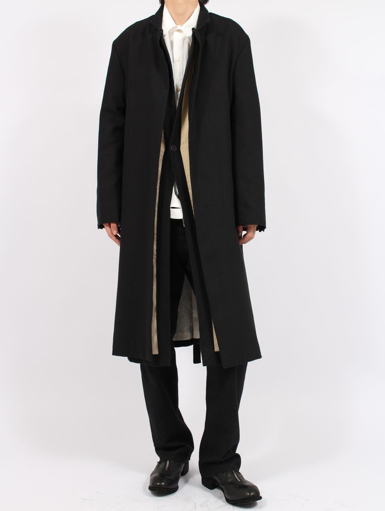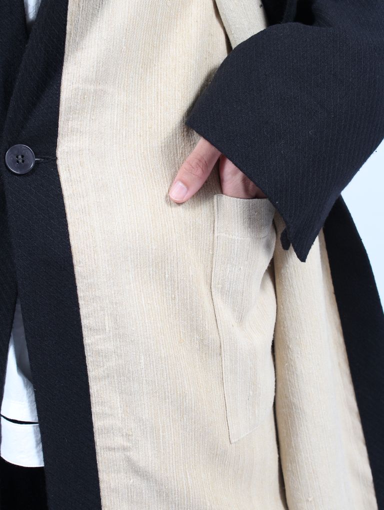 【25AW】ユニセックス リラックス フィット アジャスダブル フロント ダブル パネル コート / UNISEX RELAXED FIT ADJUSTABLE FRONT DOUBLED PANEL COAT / オフホワイト+オフブラック