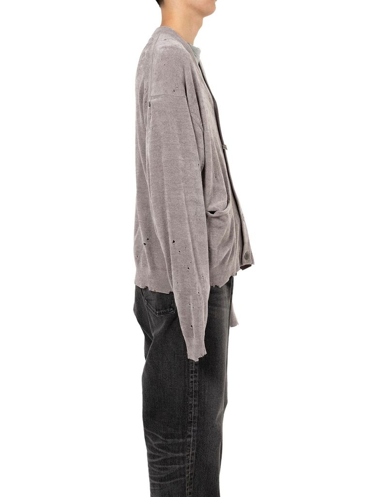 【25AW】ディストレスド ニット カーディガン / DISTRESSED KNIT CD / グレー