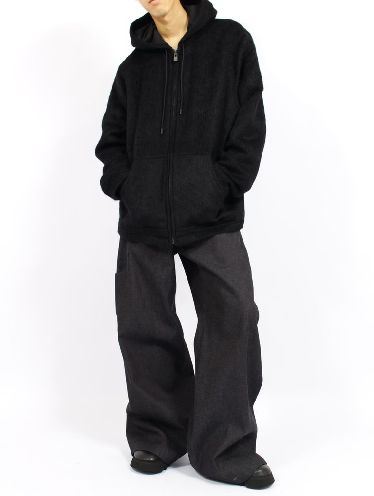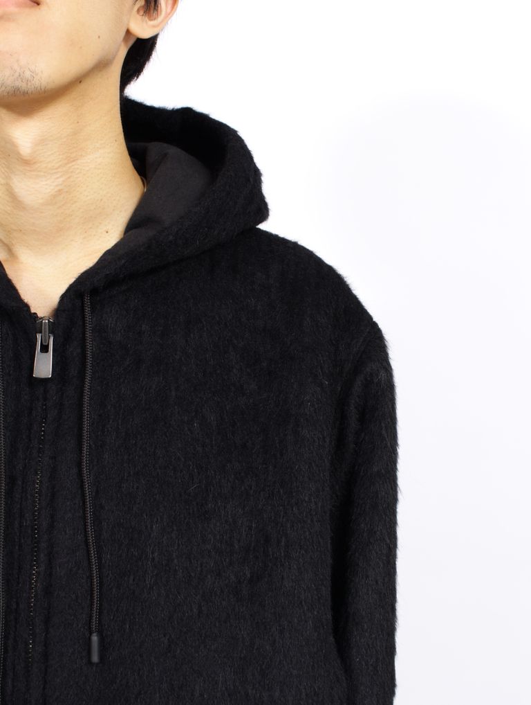【STORY別注】【15着限定】ウールシャギー ジップアップ パーカー / WOOL SHAGY ZIP-UP HOODIE / ブラック