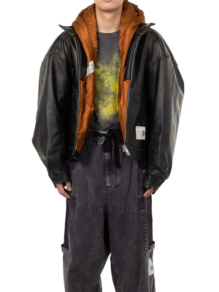 【25AW】エクステンデッド プラケット フード コーテッド レザー ジャケット / LEATHER JACKET / ブラック
