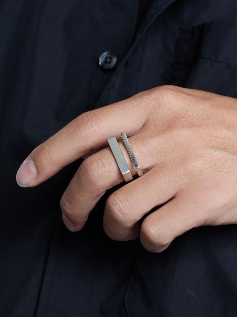 ディファレント ウィデュス リング ウィズ ヘアー ライン / DIFFERENT WIDTH RING WITH HAIR LINE / シルバー