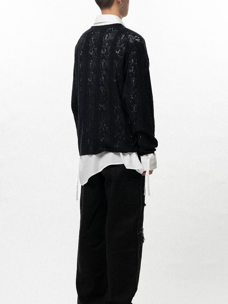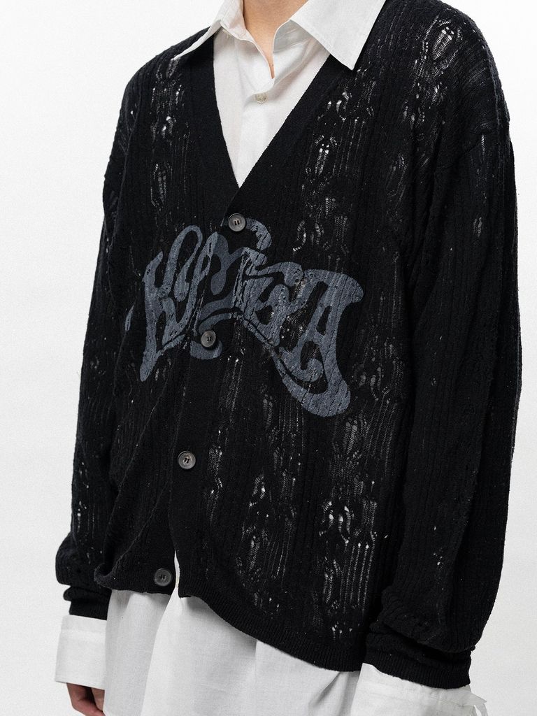 【26SS】ウェービー カミヤ プリンテッド シルクレース ニット カーディガン / "WAVY KAMIYA" PRINTED SILK LACE KNIT CARDIGAN / ブラック