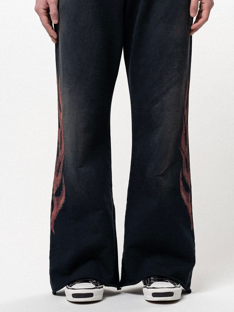 【26SS】クレヨン フレーム ブーツカット スウェットパンツ / "CRAYON FLAME" DISTRESSED BOOTCUT SWEAT PANTS / ブラック
