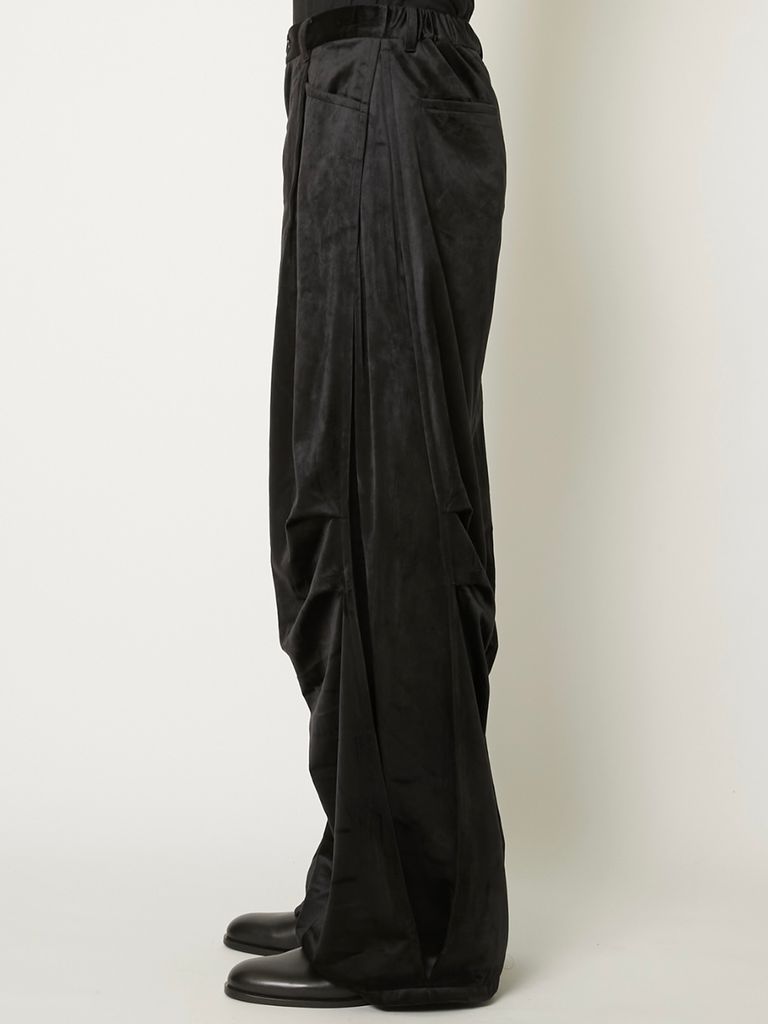 【26AW】ドレープド ヴェルベット タック パンツ / DRAPED VELVET TUCK PANTS / ブラック