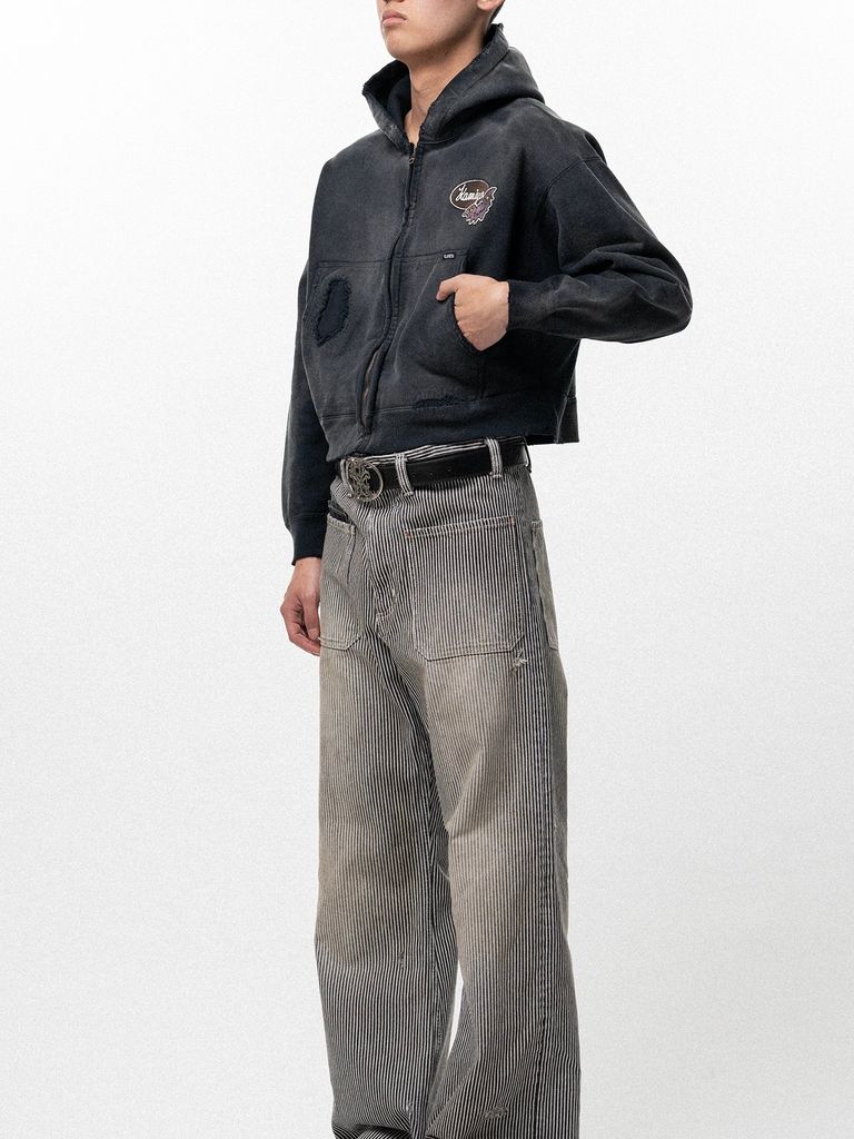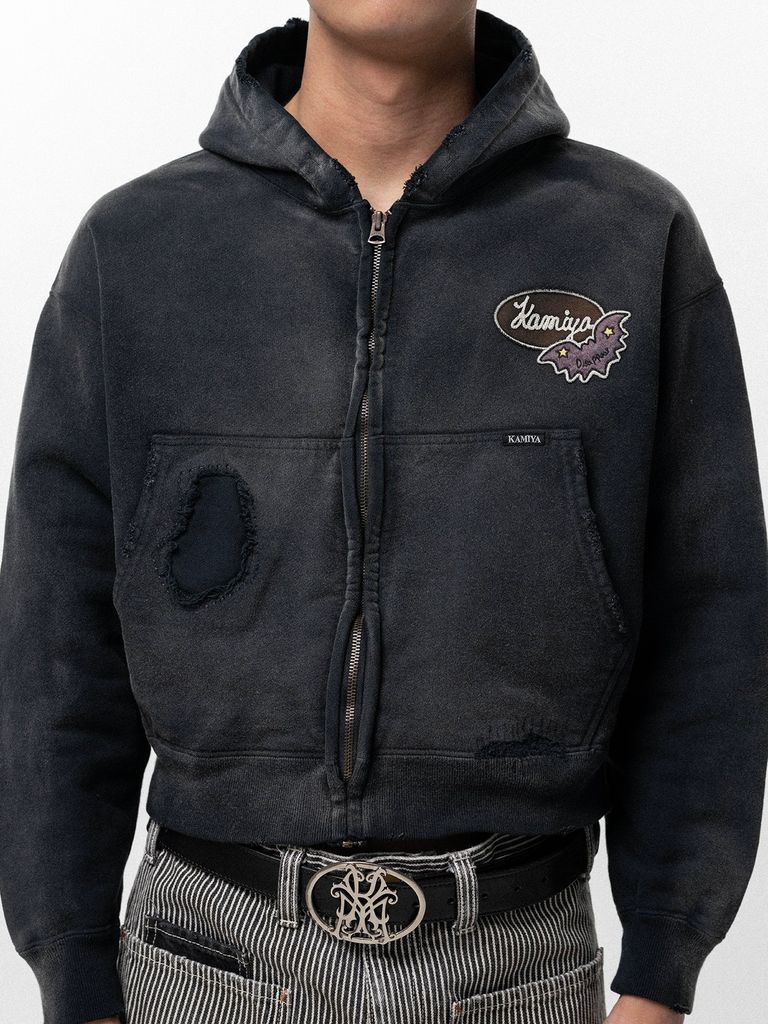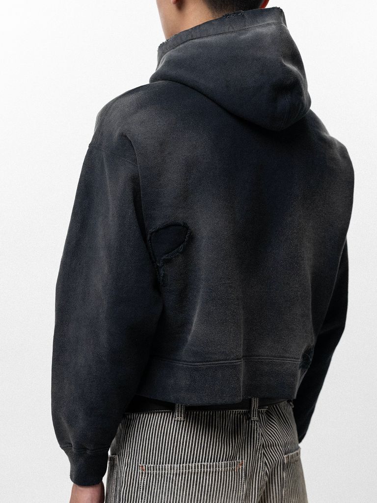 【26SS】リペアド ネイム パッチ ジップ ショート フーディー / REPAIRED NAME PATCH ZIP SHORT HOODIE / ブラック