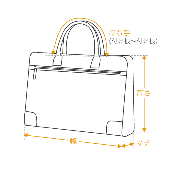 | サイズ | 持ち手 | 幅 | 高さ | マチ |