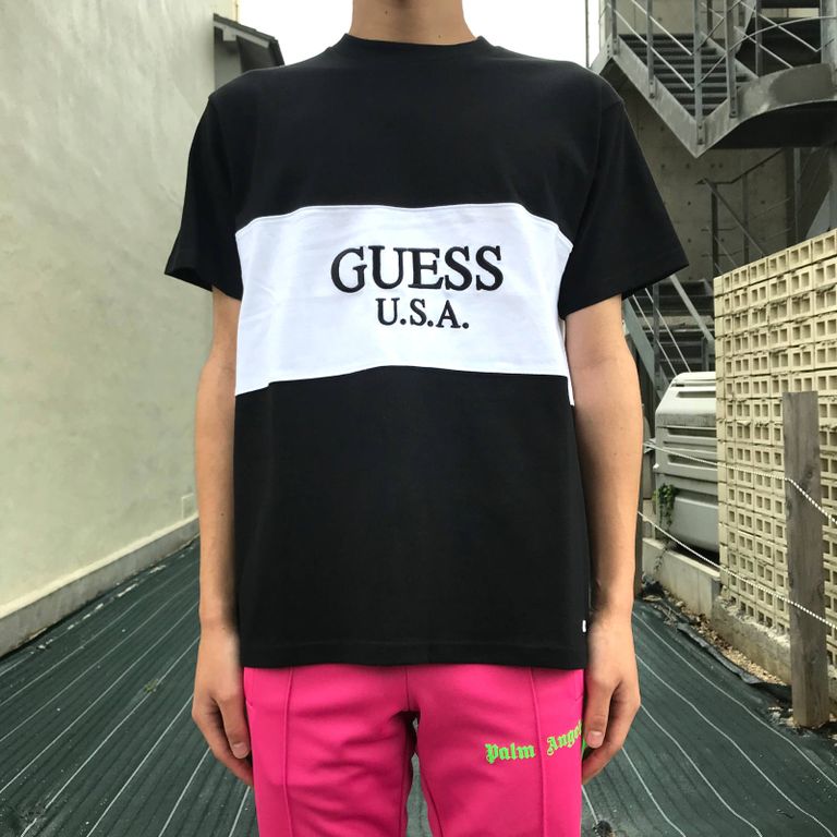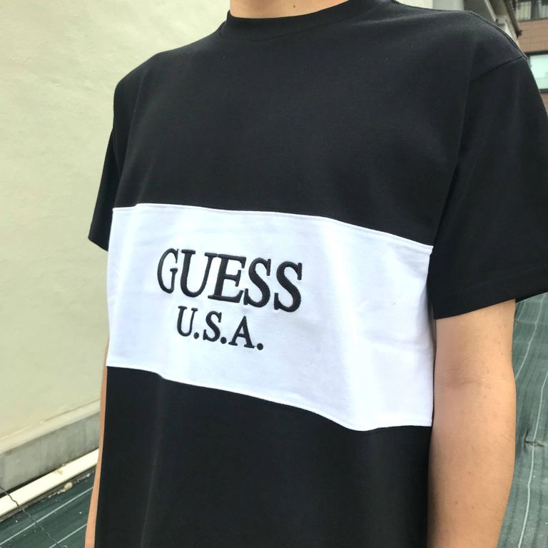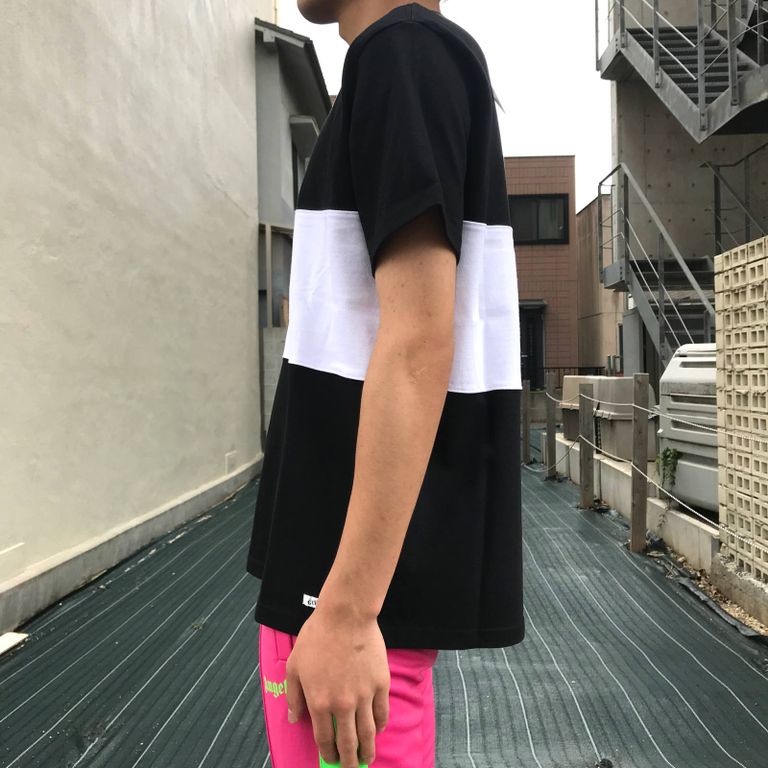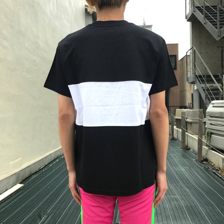 ロゴ刺繍 ラインクルーネックカットソー - BLACK×WHITE