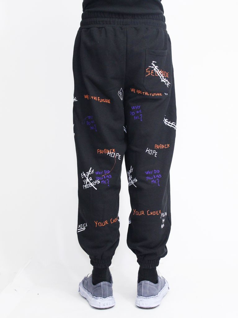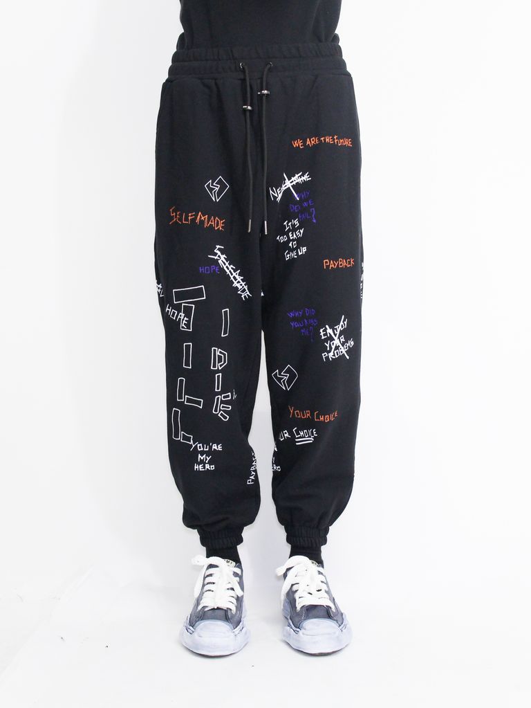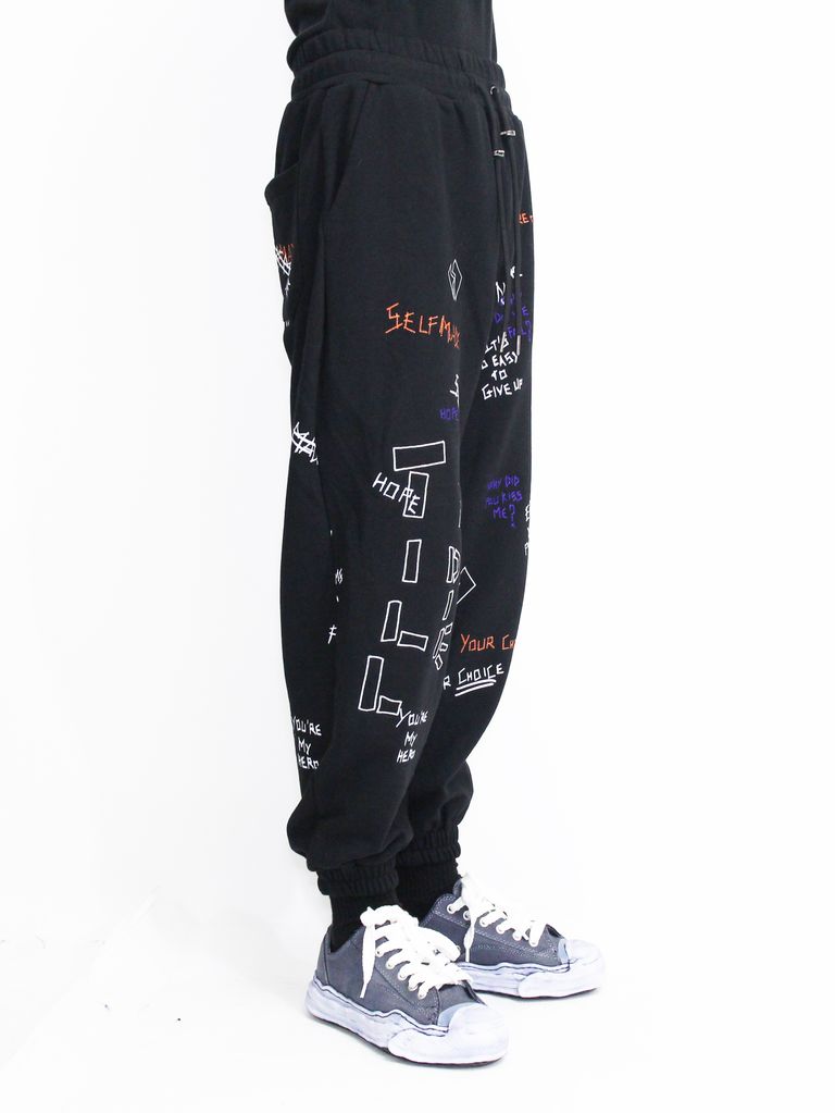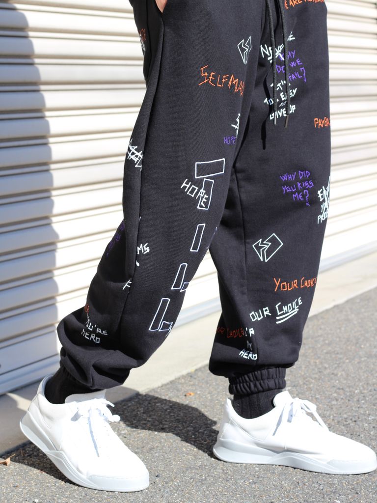 【20AW】総柄 刺繍プリント ジョガーパンツ / WRITTINGS JOGGER PANTS / ブラック
