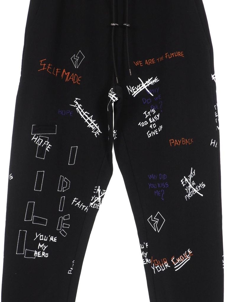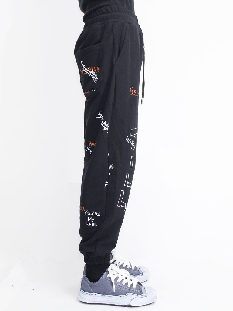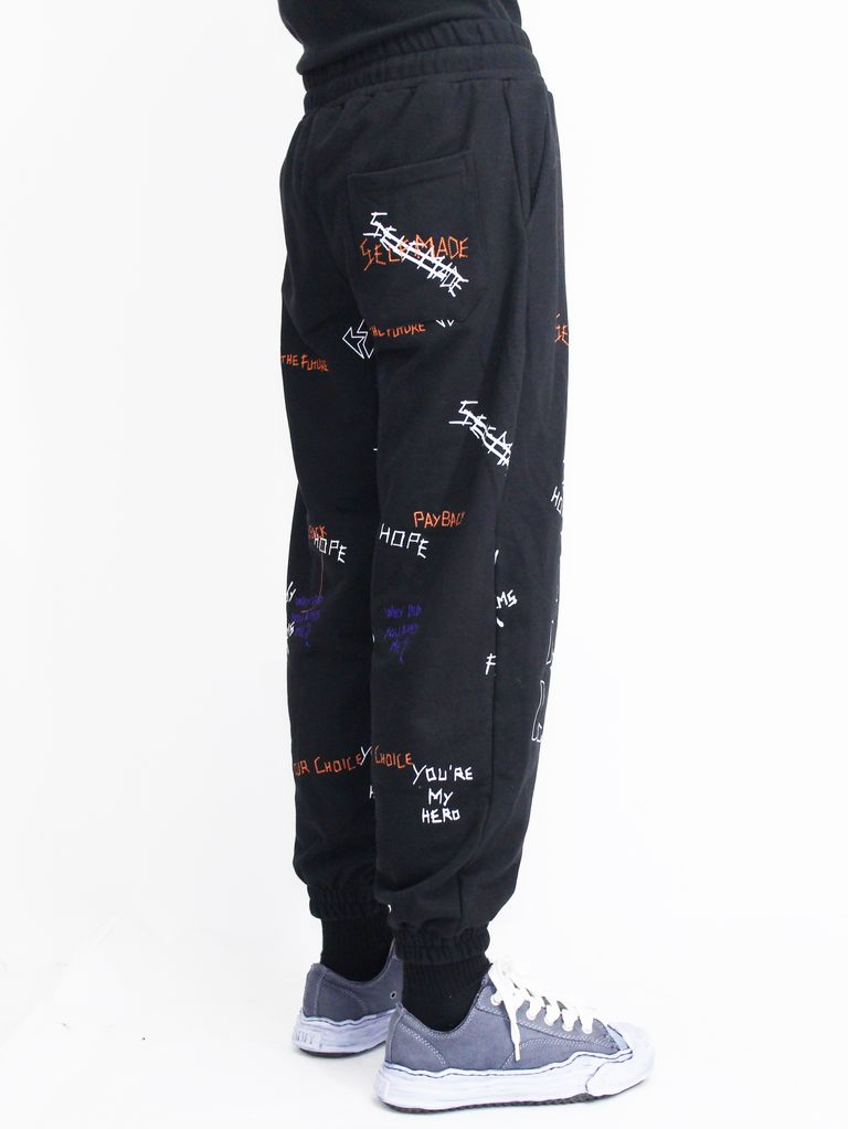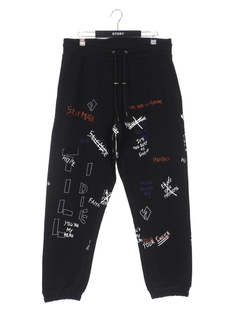 【20AW】総柄 刺繍プリント ジョガーパンツ / WRITTINGS JOGGER PANTS / ブラック