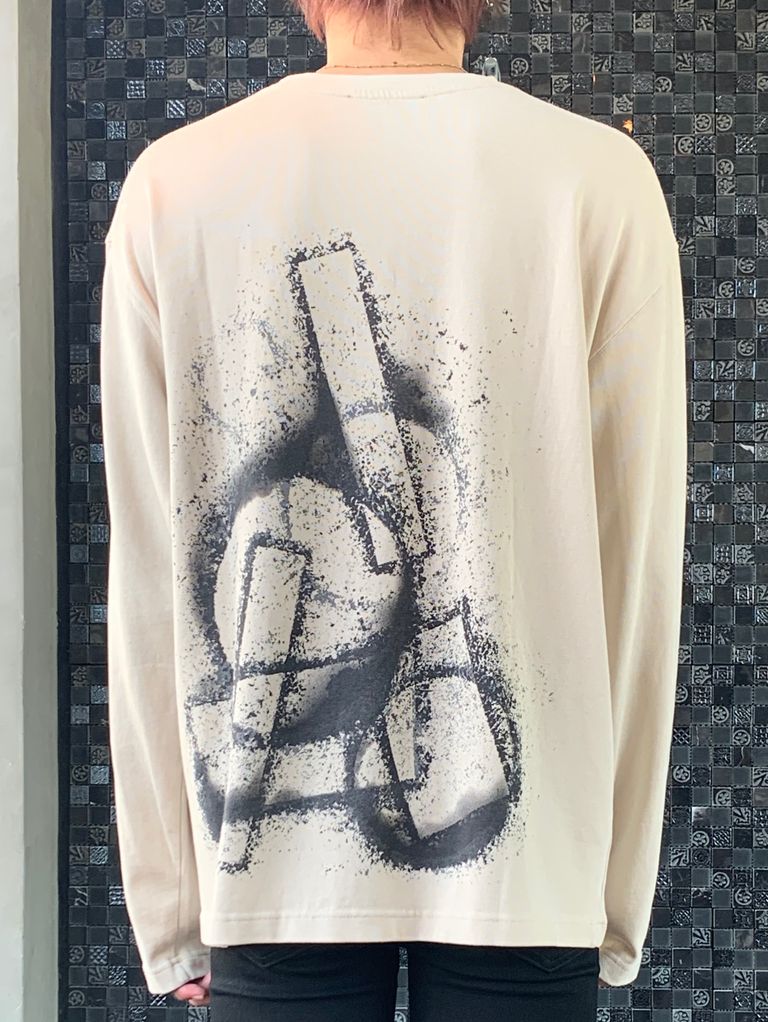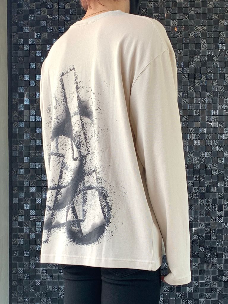 バックペイント ロングスリーブ ジャージTシャツ / COTTON SINGLE JERSEY STONE STENCIL LONG SLEEVE T-SHIRT / ベージュ × ブラック